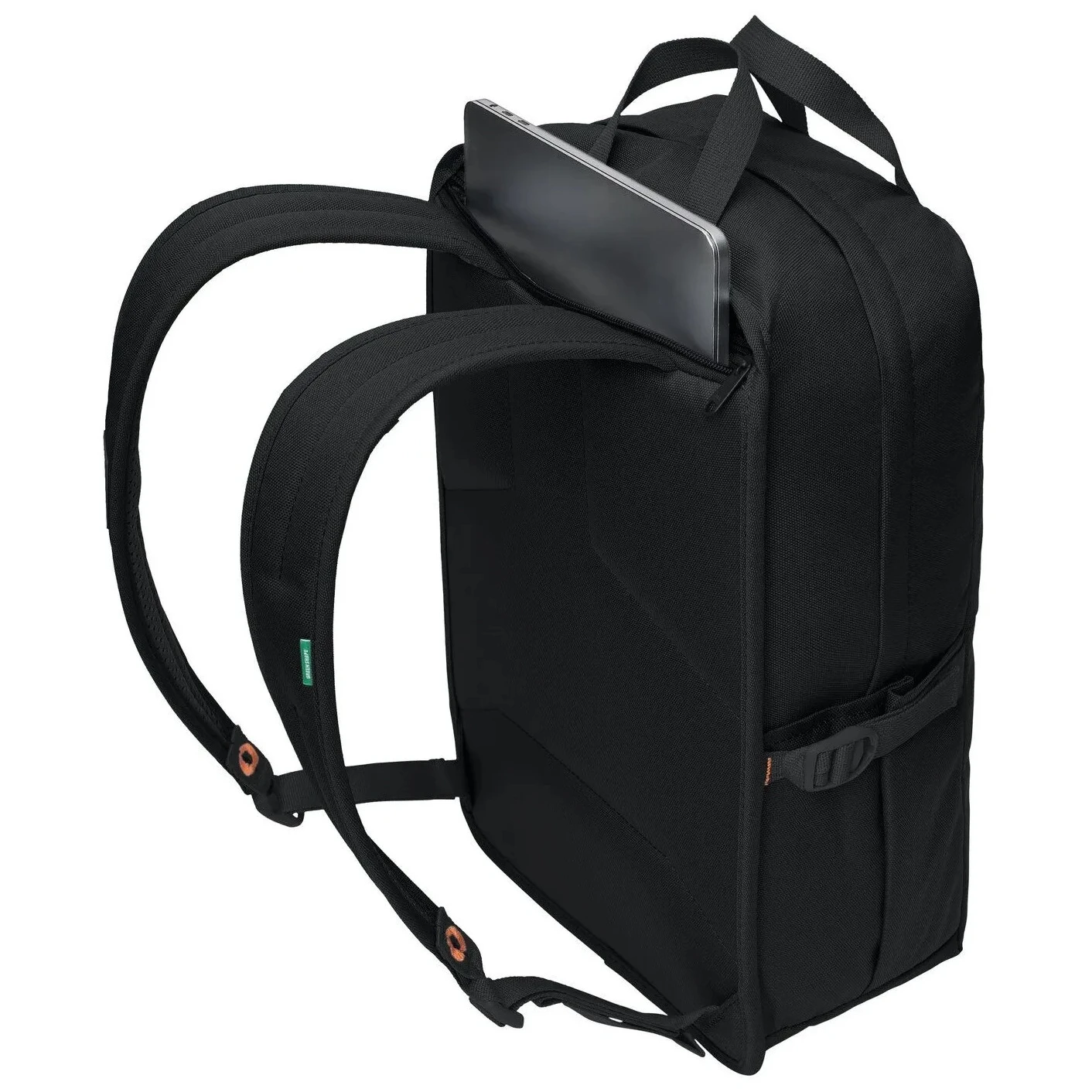 Plecak posiada tylną wyściełaną przegrodę na laptopa, dostępną od góry, główną przegrodę z praktycznym organizatorem oraz dwie boczne kieszenie. Niezbędne są pasy kompresyjne i uchwyt, dzięki któremu plecak jest łatwy do podniesienia.