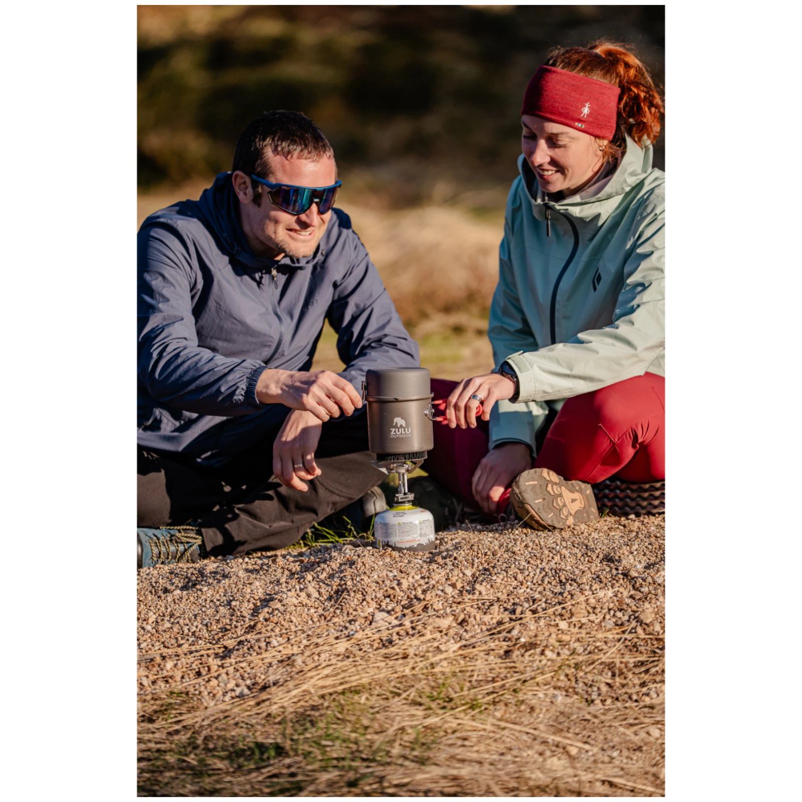 Zestaw naczyń Zulu Inja Plus ma anodyzowaną powierzchnię z wykończeniem odpornym na ogień i ścieranie. Zawiera 1 × większą + 1 × mniejszą menażkę , która może być używana jako pokrywka. Zestaw wygodnie mieści 230 g kartusz gazowy i małą kuchenkę, co znacznie zaoszczędzi miejsce w plecaku. Każdy element posiada składane uchwyty z silikonową powłoką ułatwiającą zdejmowanie z płomienia.