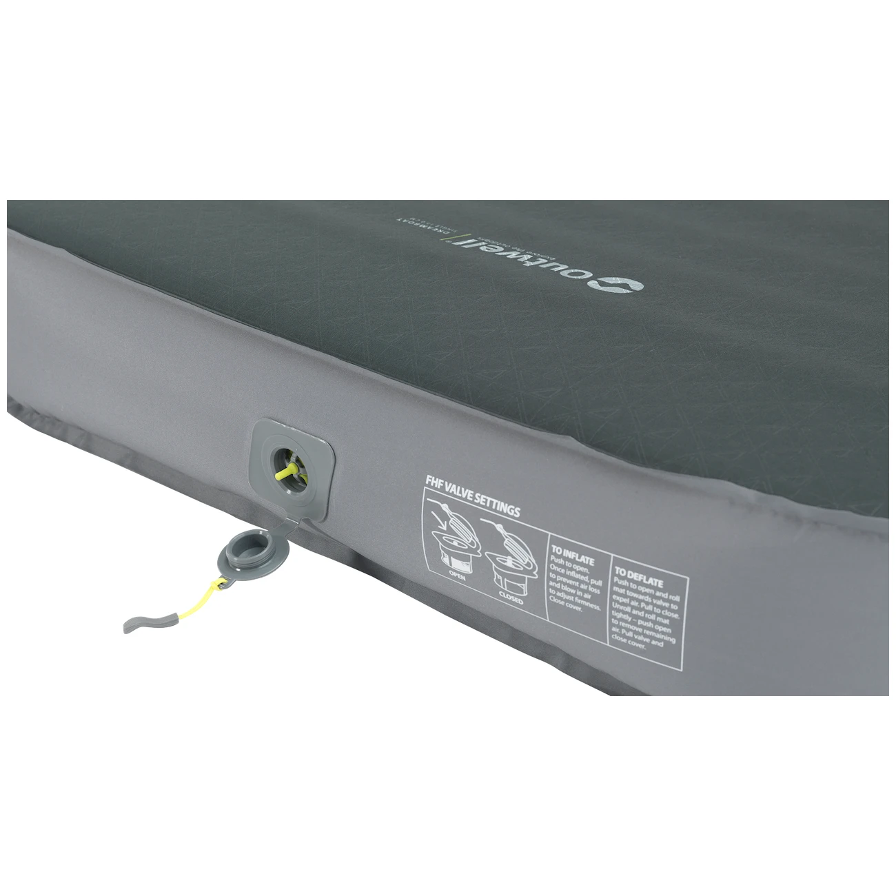 Innowacyjny płaski zawór o wysokim przep ływie zapewnia szybkie i niezawodne nadmuchiwanie i opróżnianie. Wentyl jest dodatkowo kompatybilny z pompami elektrycznymi. Innowację przeszło również wypełnienie piankowe, które dzięki wycięciom zwiększa komfort i zmniejsza wagę karimaty. Specjalna obróbka ścianek bocznych ułatwia nadmuchiwanie, a także pomaga lepiej zachować kształt 3D, nawet pod ciśnieniem. Oczywistością jest pasek do ściągnięcia zwiniętej karimaty oraz pokrowiec na zamek.