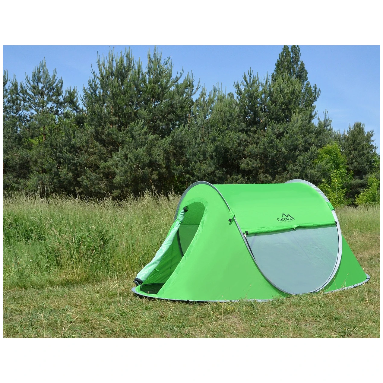 Cattara Bovec to praktyczny, samorozkładający się namiot, idealny na kemping, festiwale lub weekendowe wypady na łono natury. Dzięki pomysłowej konstrukcji Super Quick namiot sam rozłoży się w kilka sekund – nie musisz tracić czasu na składanie pałąków.