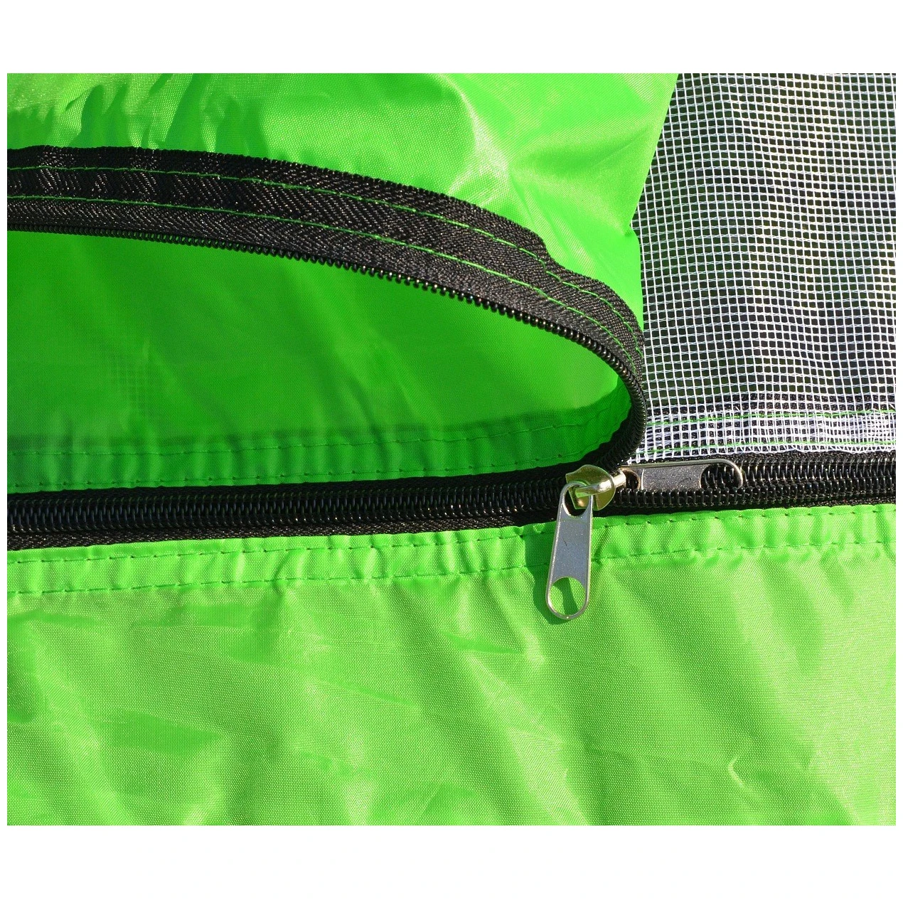 Wymiary 245 × 145 × 95 cm zapewnią wystarczająco dużo miejsca dla dwóch osób. Drzwi wejściowe są wyposażone w dwustronny zamek błyskawiczny i moskitierę, która niezawodnie chroni przed owadami. Po bokach namiotu znajdują się duże okna wentylacyjne, zapewniające dobrą cyrkulację powietrza nawet podczas ciepłych nocy.