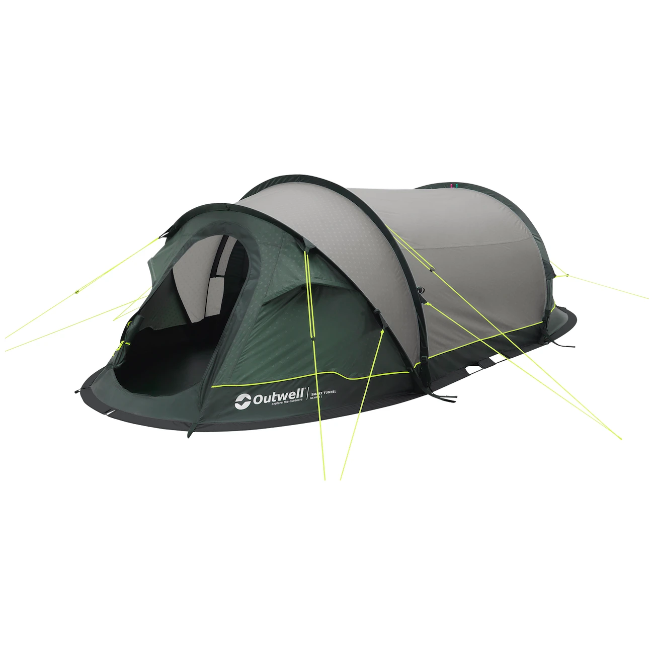 Konstrukcja namiotu wykonana jest z mocnego, ale elastycznego włókna szklanego, które jest lekkie. Rozstawienie namiotu jest bardzo proste dzięki samorozkładającemu się mechanizmowi. Po rozpakowaniu wbijasz szpilki i mocujesz linki naciągowe, które mają na całej długości tkaniny podwójne punkty mocowania, a w miejscach połączenia z namiotem zastosowano specjalne wzmocnienia. Outwell System Wind Guard 2.0 poprawia stabilność przy silnym wietrze.
