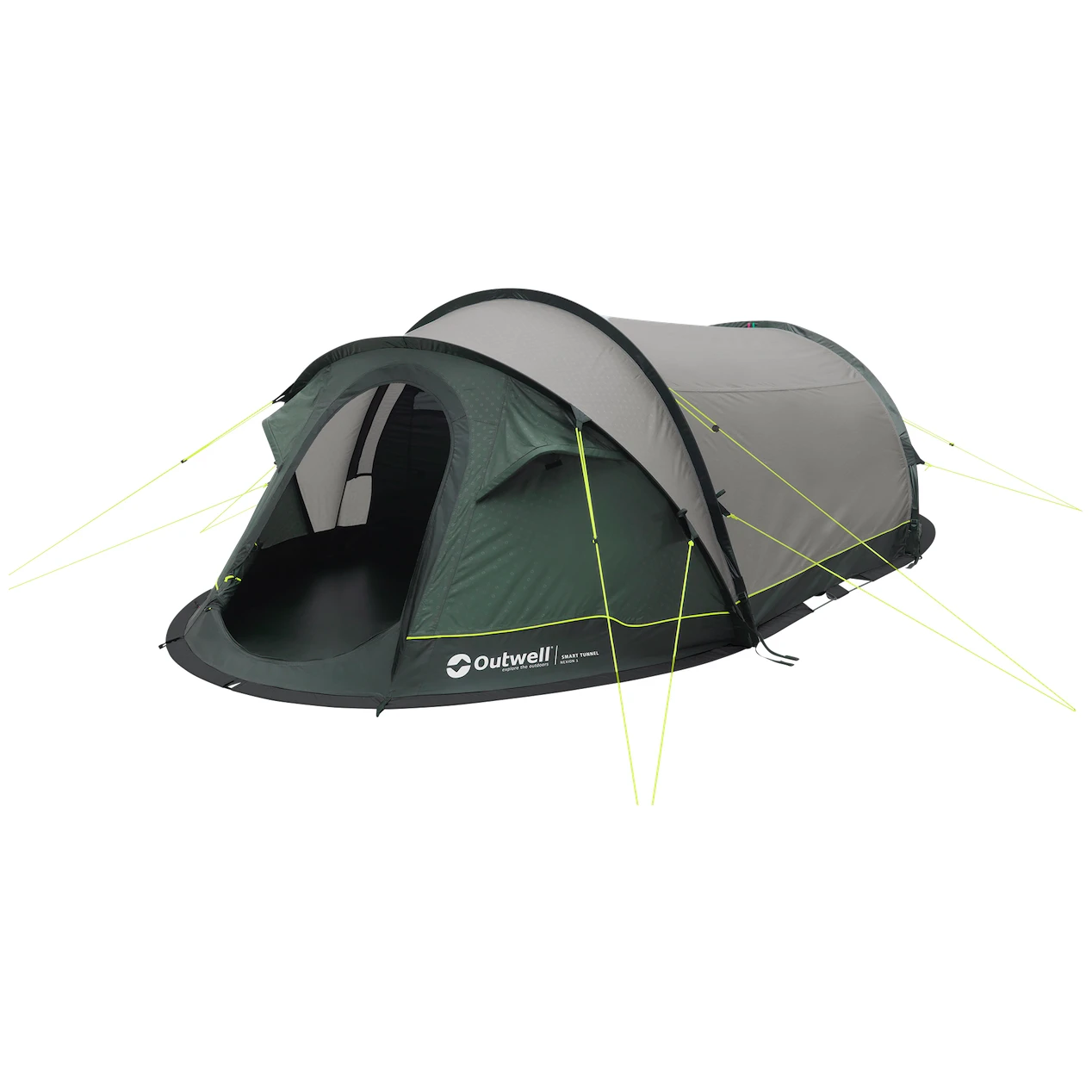 Konstrukcja namiotu wykonana jest z mocnego, ale elastycznego włókna szklanego, które jest lekkie. Rozstawienie namiotu jest bardzo proste dzięki samorozkładającemu się mechanizmowi. Po rozpakowaniu wbijasz szpilki i mocujesz linki naciągowe, które mają na całej długości tkaniny podwójne punkty mocowania, a w miejscach połączenia z namiotem zastosowano specjalne wzmocnienia. Outwell System Wind Guard 2.0 poprawia stabilność przy silnym wietrze.