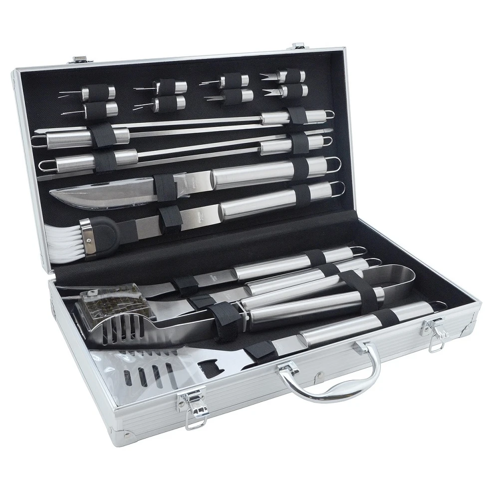 18-częściowe narzędzia do grillowania Zestaw Cattara w aluminiowej walizce pozwalają mieć pod ręką wszystko, czego potrzebujesz do grillowania i późniejszej konserwacji grilla.