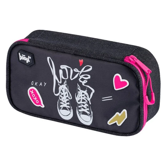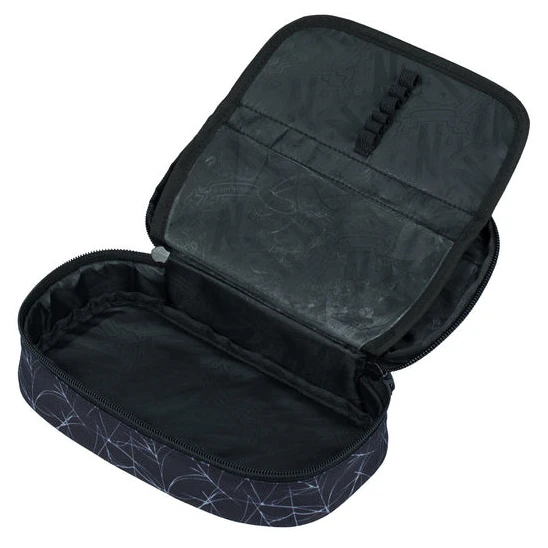 Sztywny piórnik szkolny Etue czeskiej marki Baagl jest przeznaczony zarówno dla dziewcząt, jak i chłopców. Etui zapinane na zamek błyskawiczny, z podwójną, rozkładaną klapką, praktycznymi gumkami, kieszonką na suwak i kieszonką na plan lekcji wewnątrz.