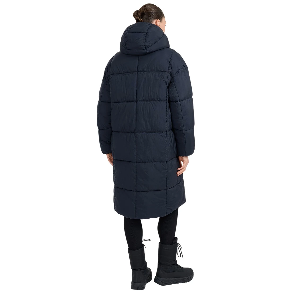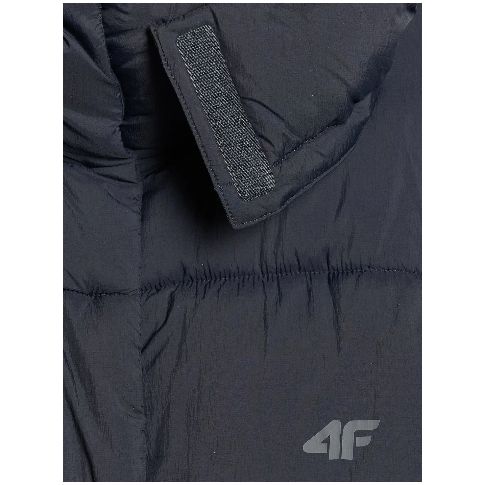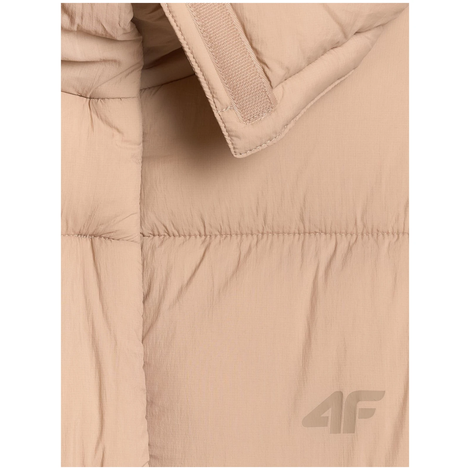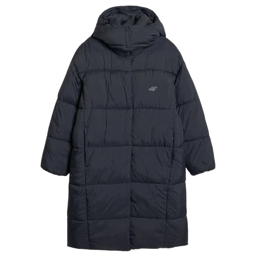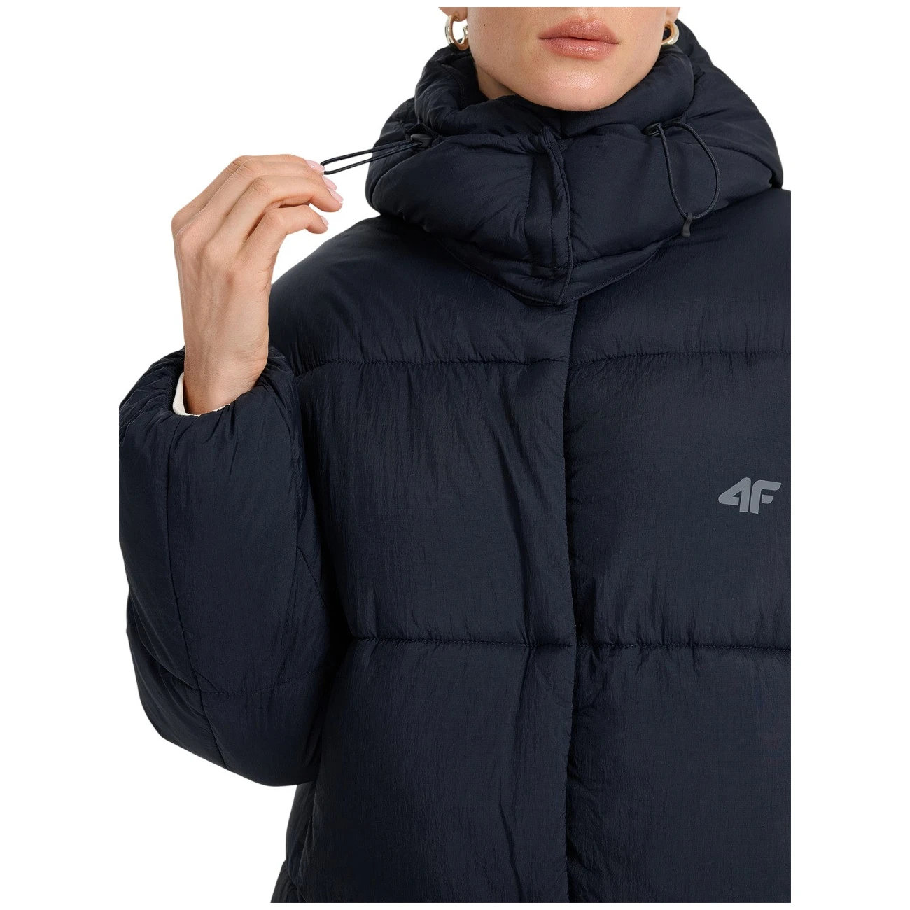 Płaszcz damski Down Jacket F588 4F o kroju oversize, o długości do kolan, z syntetycznym wypełnieniem i hydrofobową powłoką zapewnia styl, ciepło i ochronę przed wilgocią.