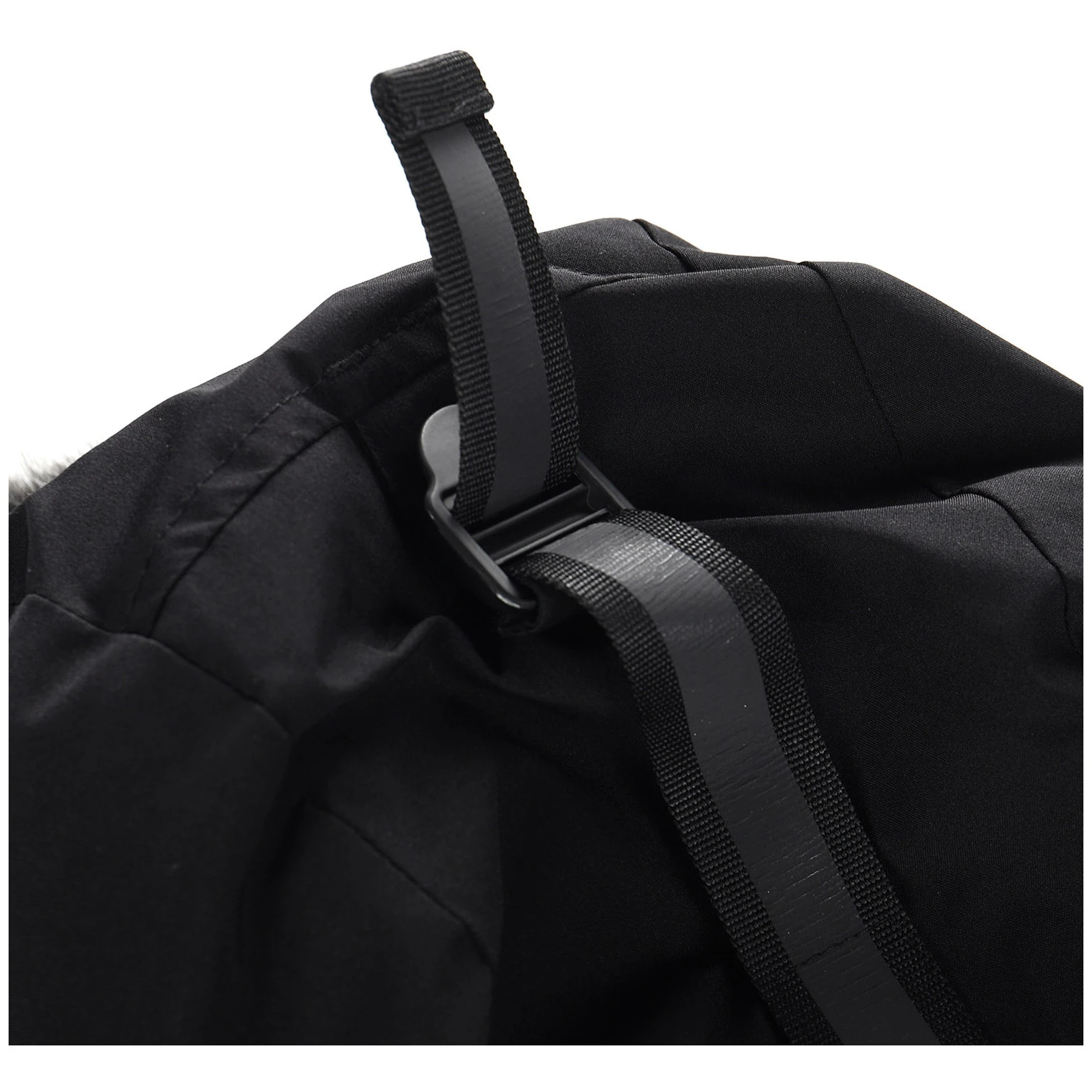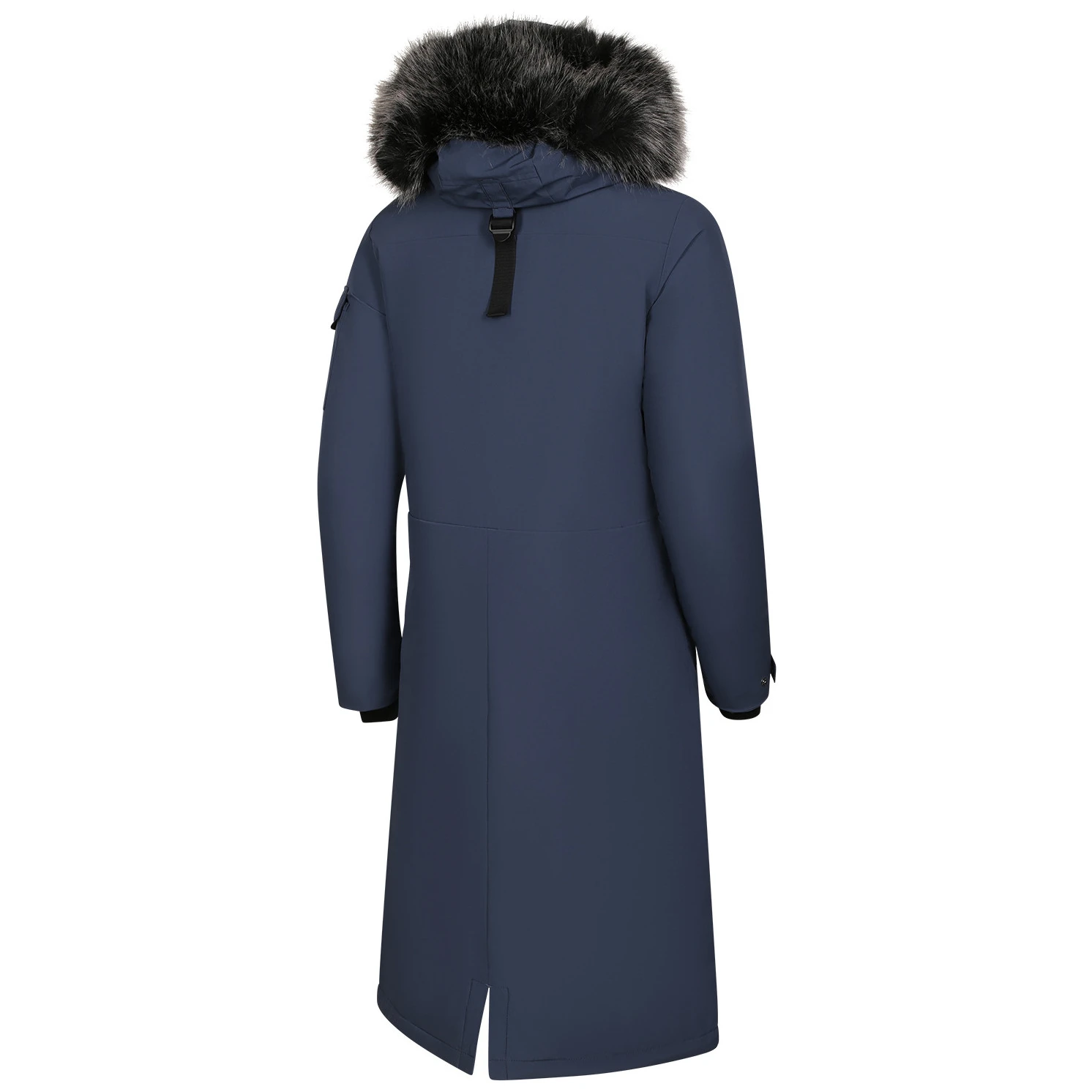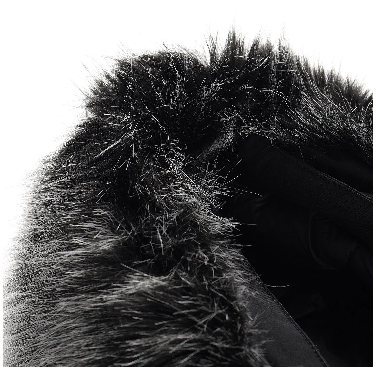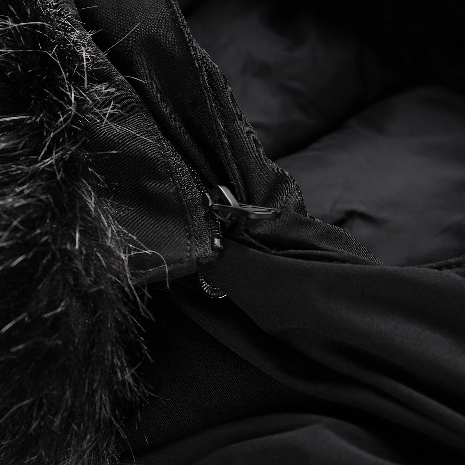 Wodoodporna, oddychająca, wiatroodporna i elastyczna tkanina wraz z mocnym, ciepłym wypełnieniem i pikowaną podszewką utrzymuje ciepło ciała nawet w niskich temperaturach. Półprzylegający krój podkreśla kobiecą sylwetkę, zapewniając jednocześnie swobodę ruchów. Nieodpinany kaptur z odpinanym futrem dodaje płaszczowi stylowego wyglądu, a wraz z ciepłym wewnętrznym kołnierzem chroni twarz i szyję przed chłodem.