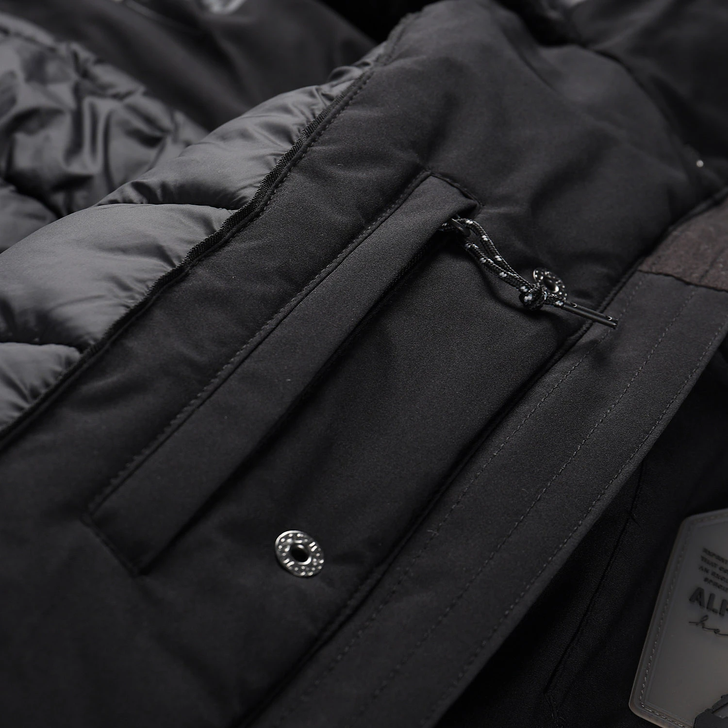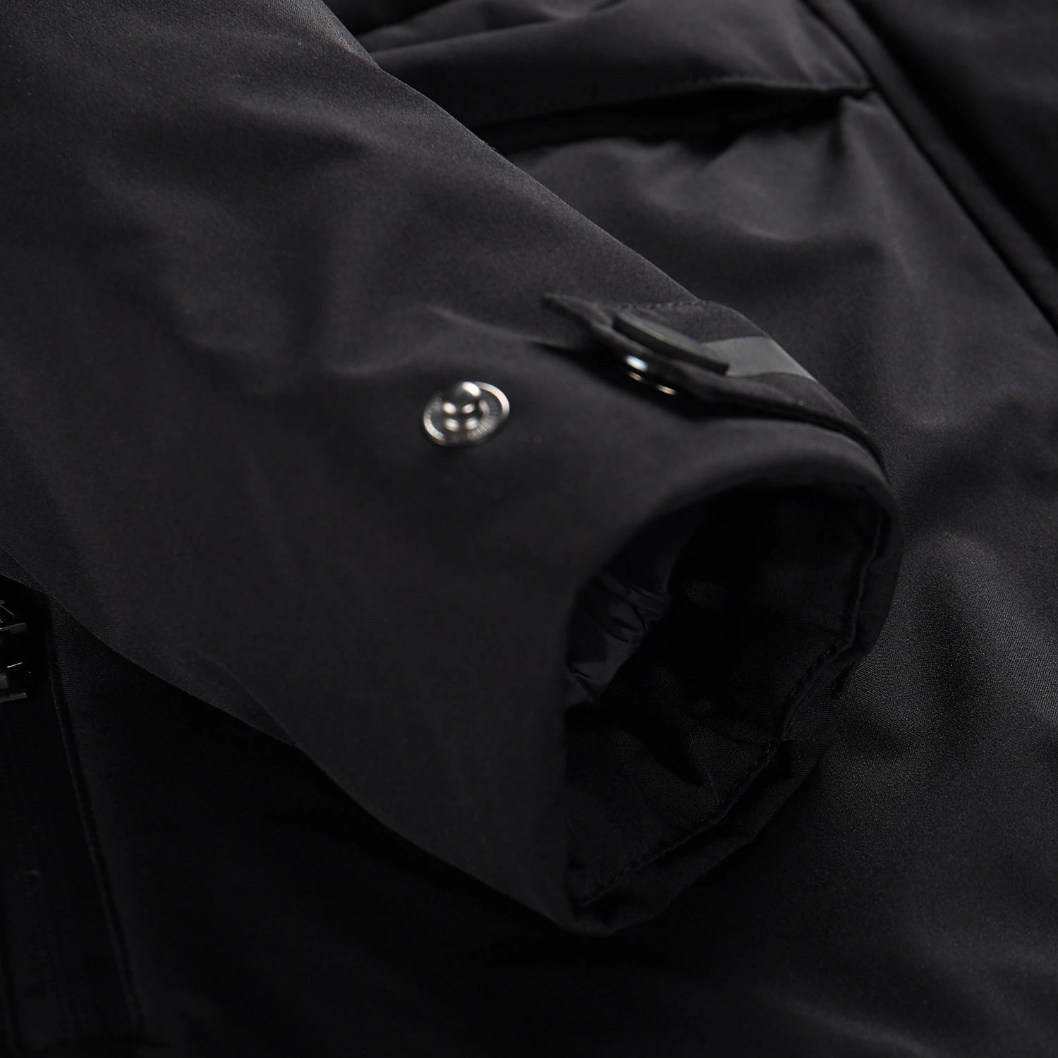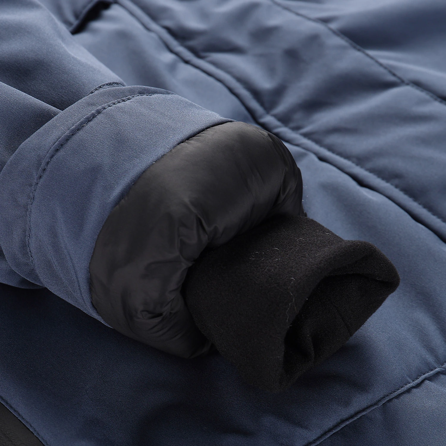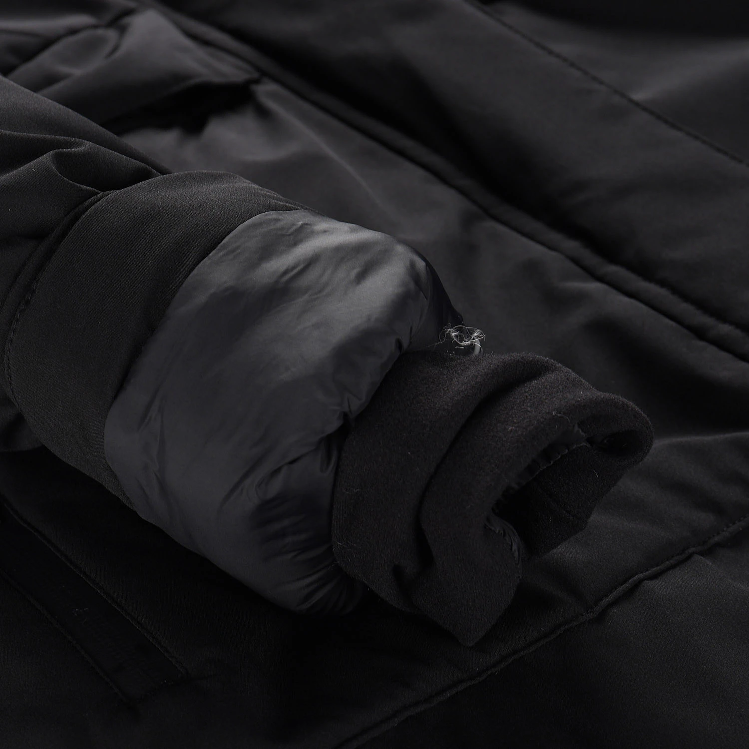 Praktyczne cechy płaszcza obejmują dwukierunkowy zamek błyskawiczny, rękawy z wewnętrznym mankietem z dzianiny, które zapobiegają przedostawaniu się zimnego powietrza, oraz osiem przestronnych kieszeni, które zapewniają wystarczająco dużo miejsca na wszystkie niezbędne rzeczy. Nowoczesny wygląd podkreśla subtelna naszywka na rękawie i wysoka jakość wykonania.
