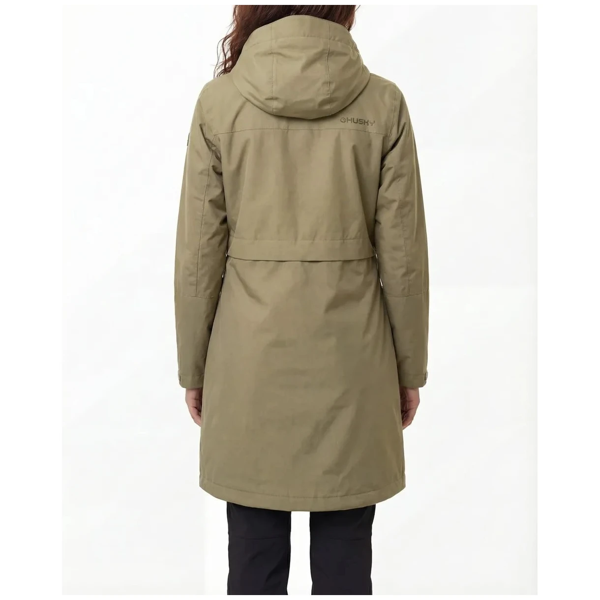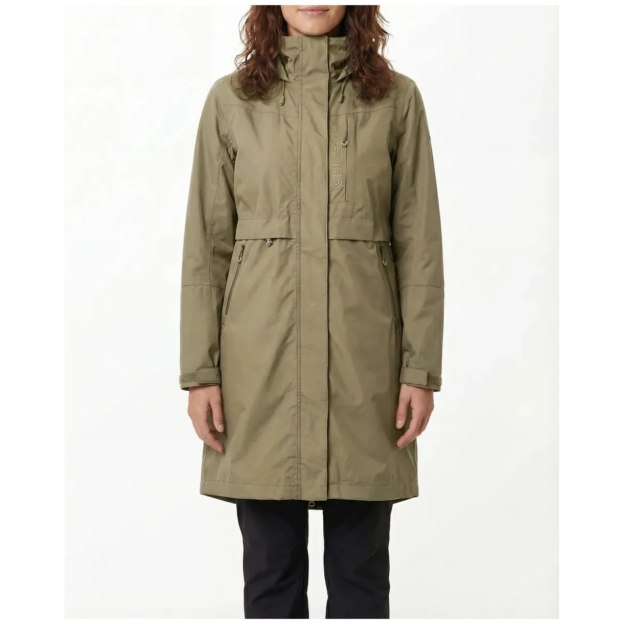 Płaszcz damski hardshell Nestia L, który łączy elegancki miejski design z ochroną przed niekorzystnymi warunkami pogodowymi podczas turystyki i codziennego użytkowania.