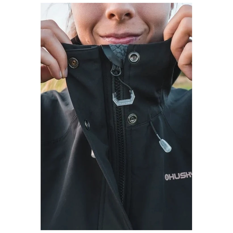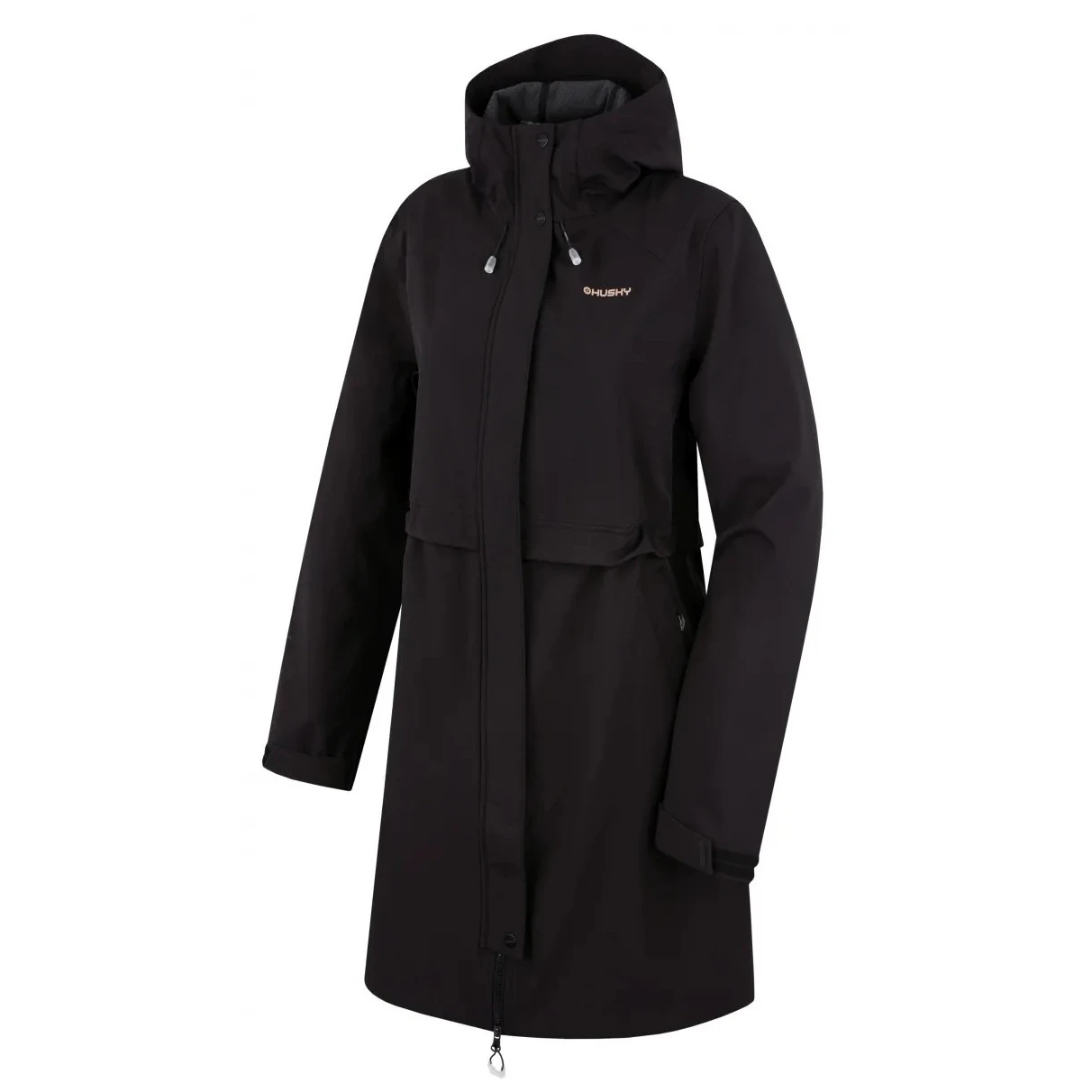 Płaszcz damski Husky Sephie L to uniwersalny softshellowy element garderoby, idealny na wędrówki i wszelkie aktywności na świeżym powietrzu. Stylowy krój z kapturem i ściągaczem w pasie chroni przed wiatrem i lekkim deszczem.