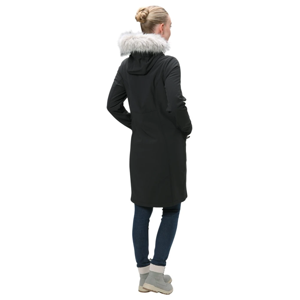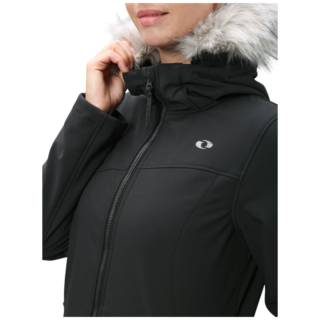Damski płaszcz softshellowy Loap Lustra z membraną Aqua Pro (5 000 mm / 5 000 g/m²/24 h) łączy funkcjonalność z eleganckim stylem.