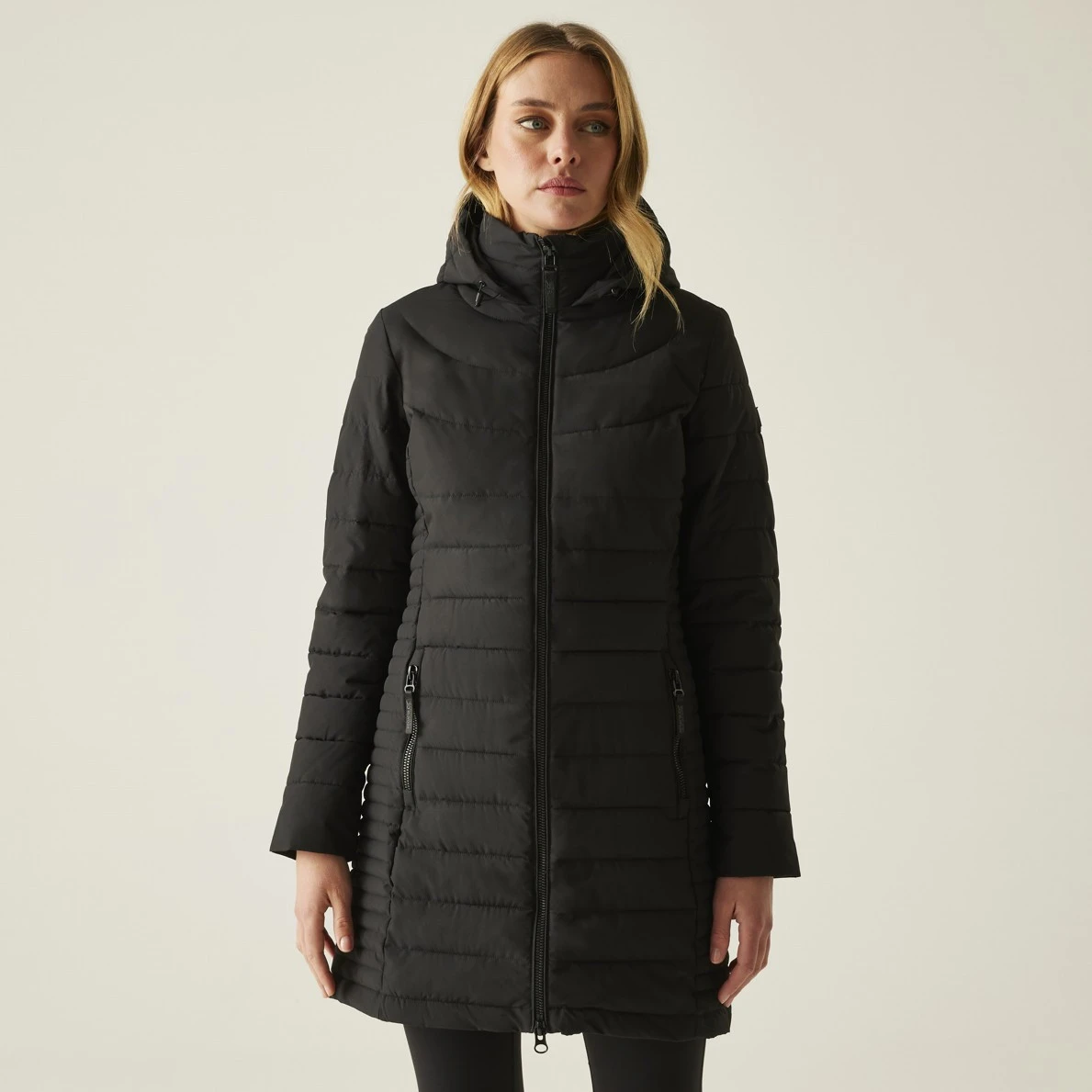 Płaszcz jest wyposażony w kaptur z regulacją, dwukierunkowy zamek błyskawiczny i dwie dolne kieszenie na zamek błyskawiczny. Podszewka z tafty poliestrowej jest przyjemna w dotyku i zapewnia komfort noszenia.