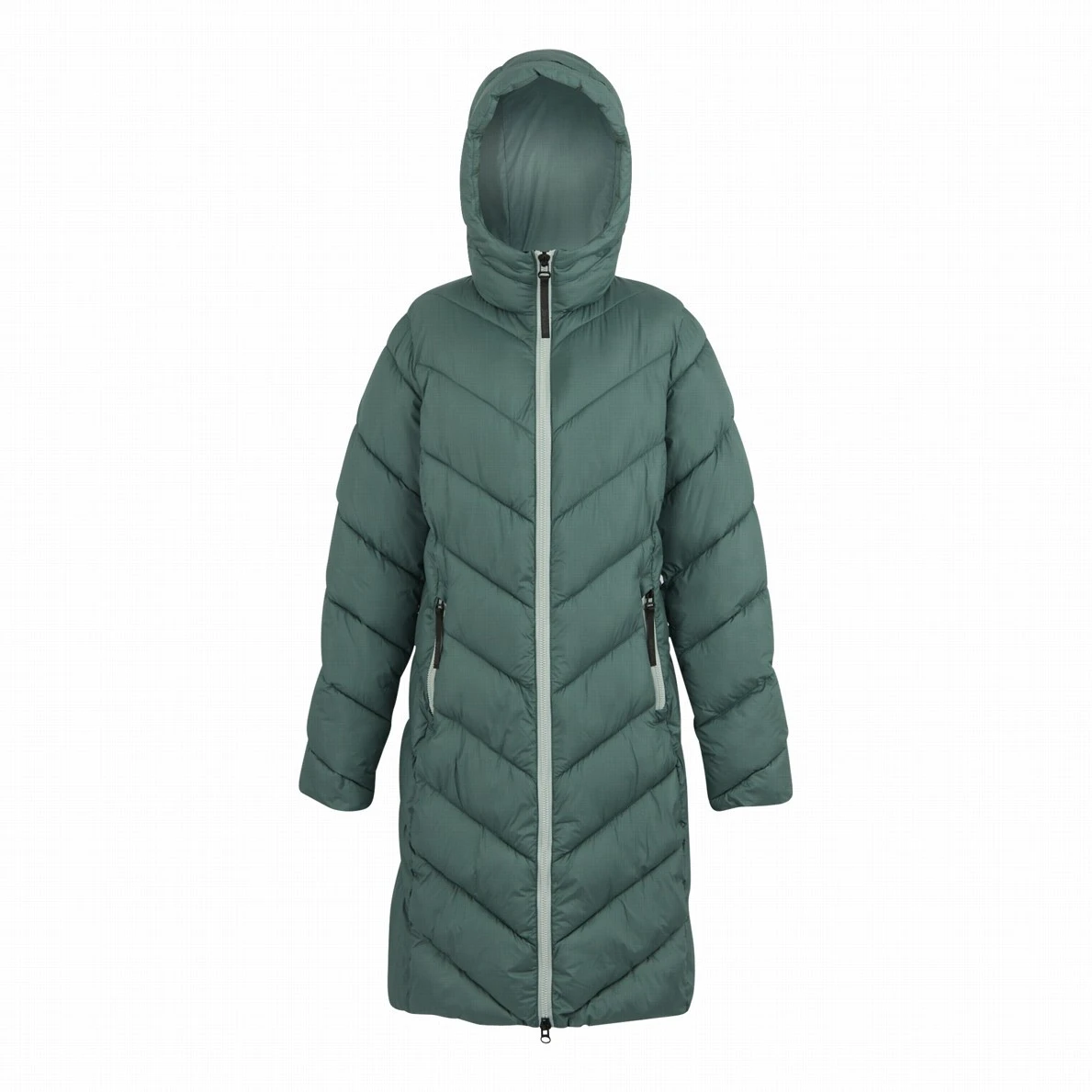 Dwukierunkowy zamek błyskawiczny z przodu, wewnętrzne mankiety i lekka podszewka z poliamidowej tkaniny 20D (37 g/m²) zapewniają wygodę na każdym kroku i chronią przed przenikaniem chłodu.
