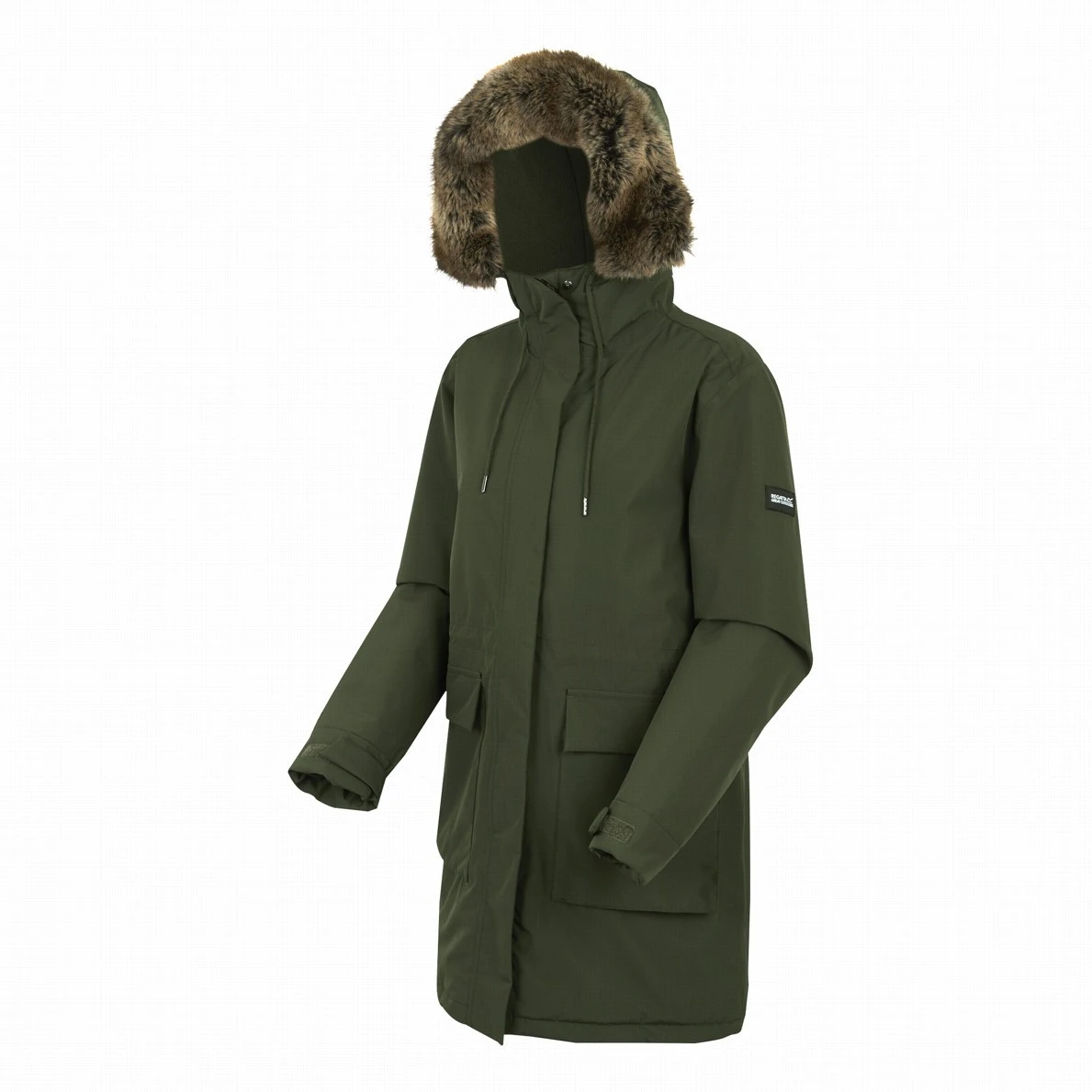 Damski płaszcz zimowy z futerkiem Sabinka marki Regatta niezawodnie ochroni Cię przed niekorzystnymi warunkami pogodowymi. Nadaje się do miasta i na wieś.
