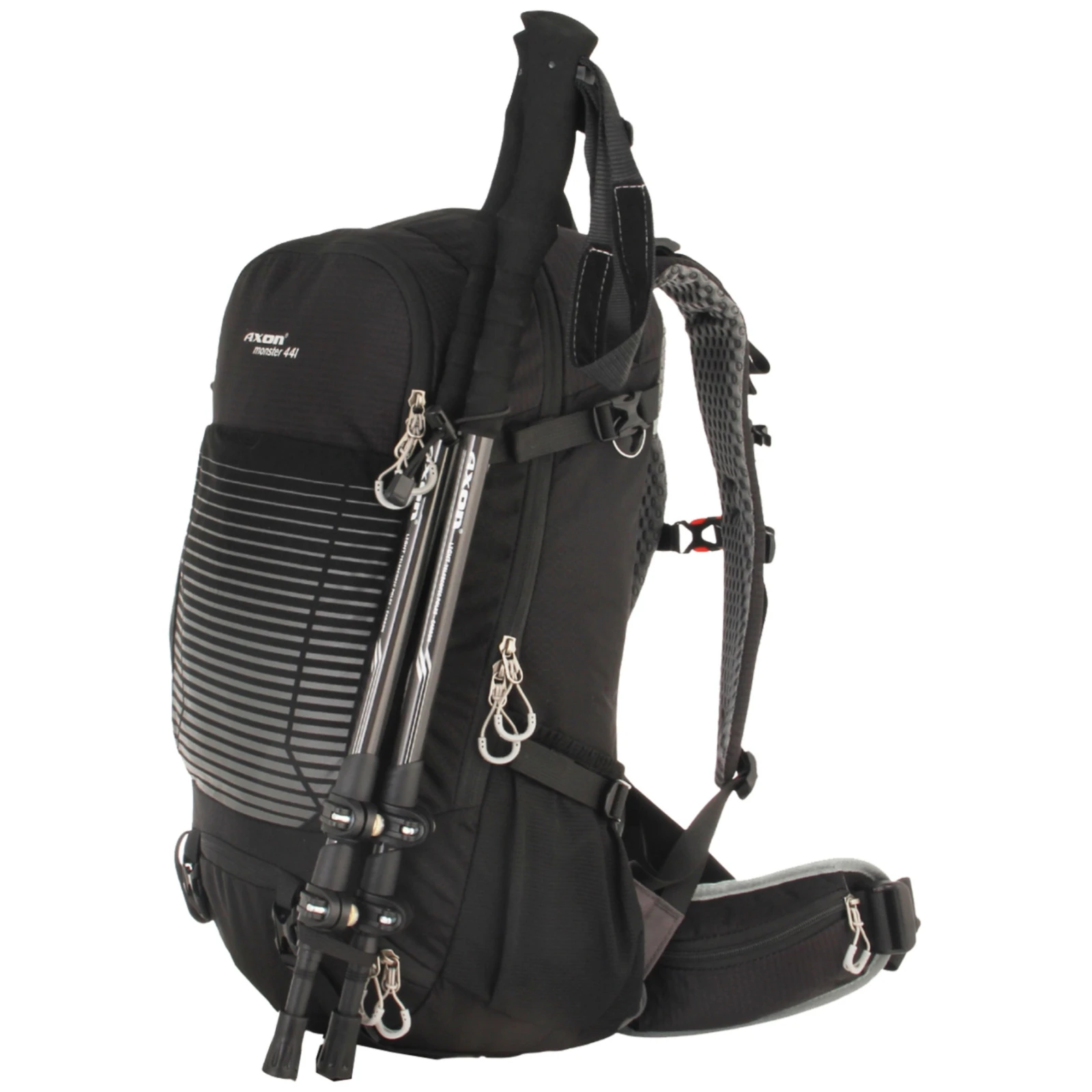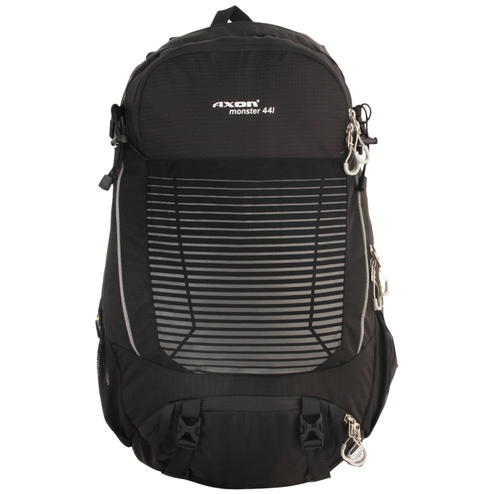 Plecak Axon Monster to uniwersalny plecak, który sprawdzi się podczas jedno- lub wielodniowych, bardziej wymagających wycieczek turystycznych. Posiada wentylowane, wyściełane plecy Airconntact z wyściełanym pasem biodrowym z kieszeniami na zamek błyskawiczny.