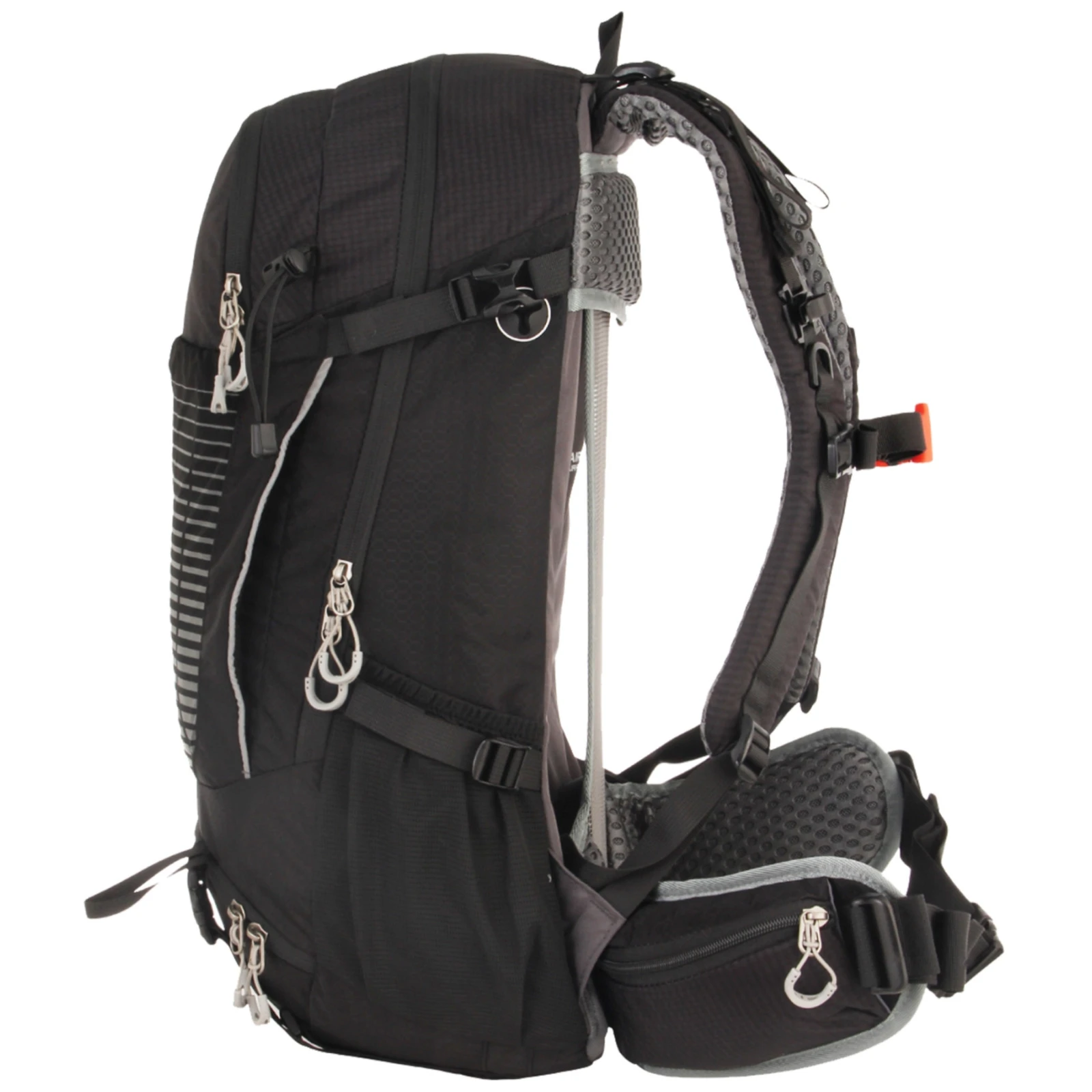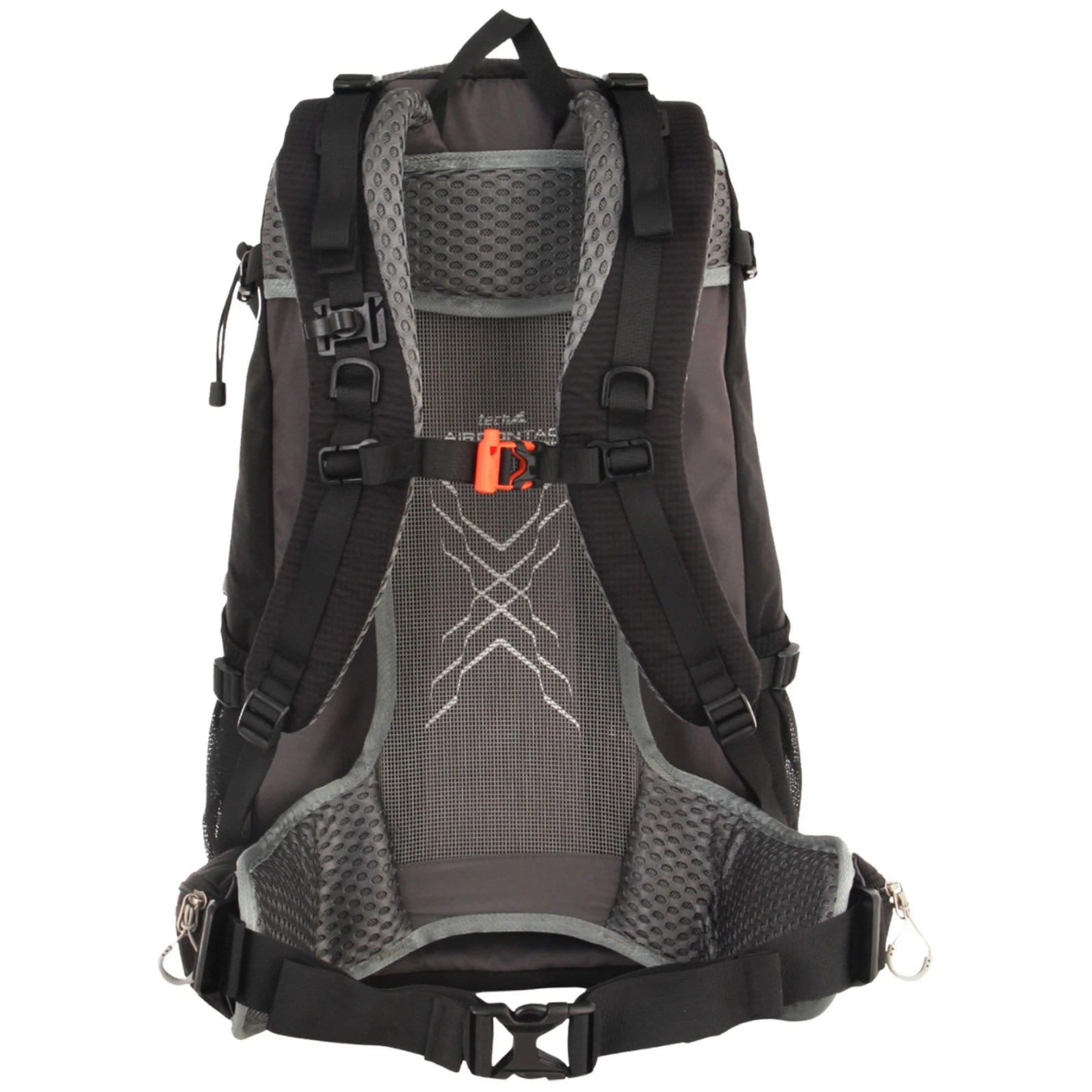 Pasy naramienne ze wzmocnionym wyściełaniem są anatomicznie wyprofilowane z regulowanym na wysokość pasem piersiowym z gwizdkiem. Anatomiczna konstrukcja z bocznymi pasami kompresyjnymi zapewnia mocne i wygodne osadzenie plecaka na plecach.
