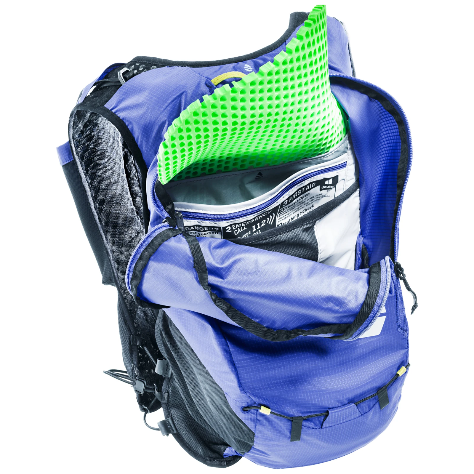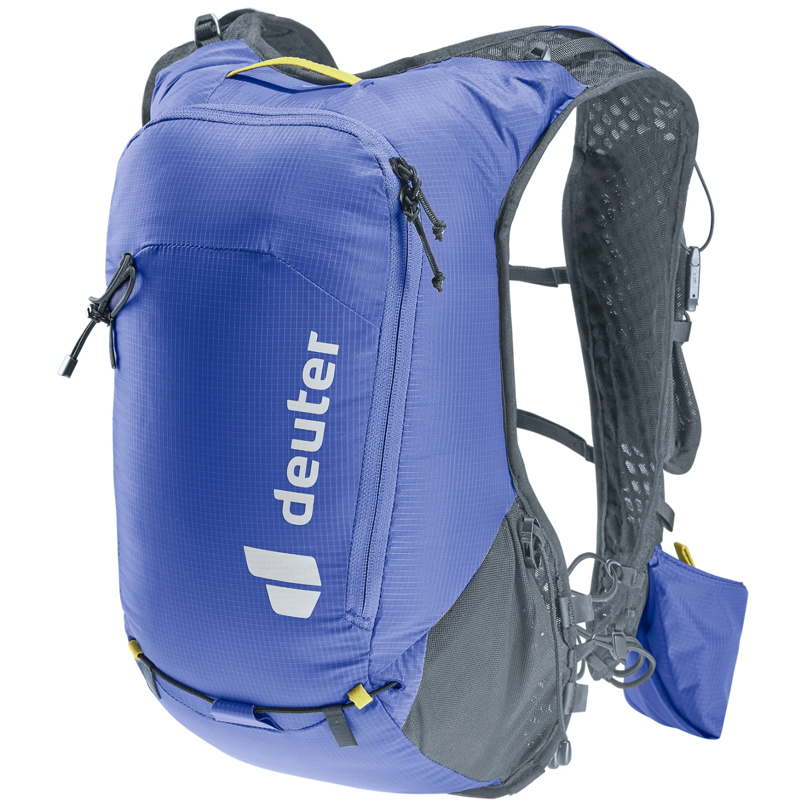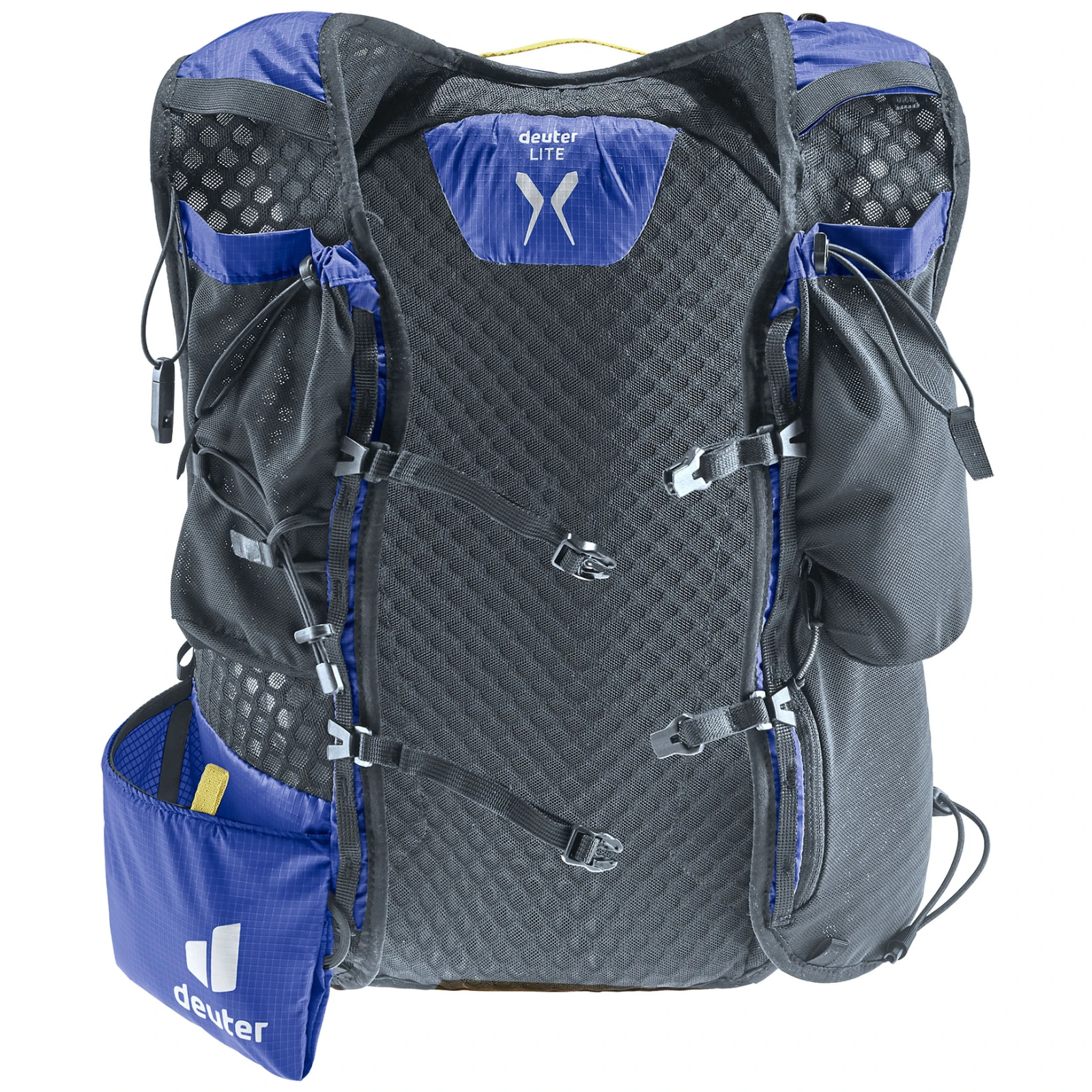 Plecak biegowy Deuter Ascender 7 jest ultralekki i superwygodny. Posiada szerokie, ergonomiczne paski na ramiona w stylu kamizelki z elastycznym systemem kompresji, dwa regulowane paski na klatkę piersiową i miękki materiał na plecach, aby zapewnić dopasowanie przypominające odzież. Wewnętrzna kieszeń z elastycznej siatki i boczne paski kompresyjne pomagają wyeliminować wahania obciążenia bez względu na to, jak trudny jest teren. Etui z przodu jednego paska na ramię umożliwia szybki i łatwy dostęp do składanych kijków trekkingowych. W kieszeniach na pasku na ramię jest miejsce na miękkie butelki i GPS. Tkanina plecaka jest wykonana w 100% z materiałów pochodzących z recyklingu i posiada certyfikat Bluesign®.