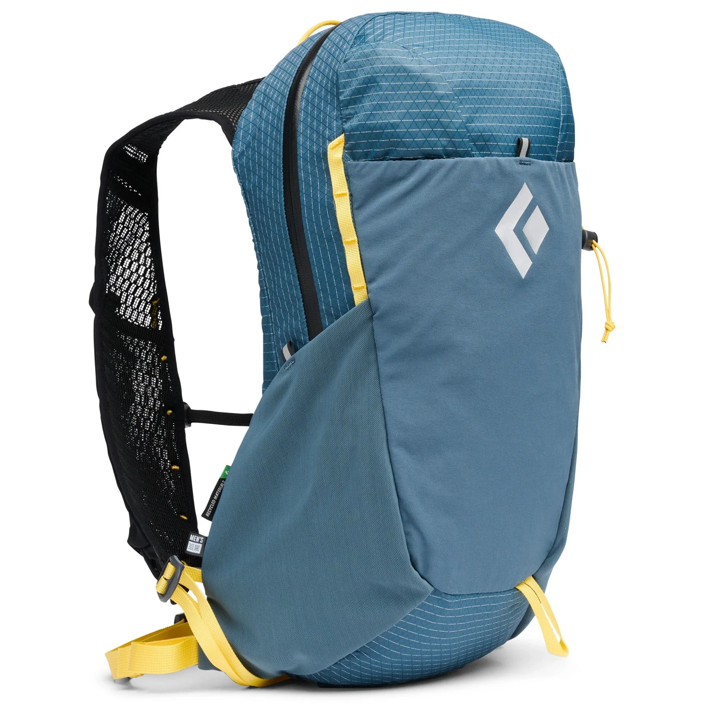 Lekki pas biodrowy jest łatwo regulowany bezpośrednio na trasie i zwiększa stabilność plecaka podczas ruchu. Plecak jest wykonany w 100% z materiałów pochodzących z recyklingu i jest wyposażony w zewnętrzną kieszeń na bukłak. Pojemność wynosi 15 litrów, co czyni go idealnym towarzyszem szybkich górskich wypraw.