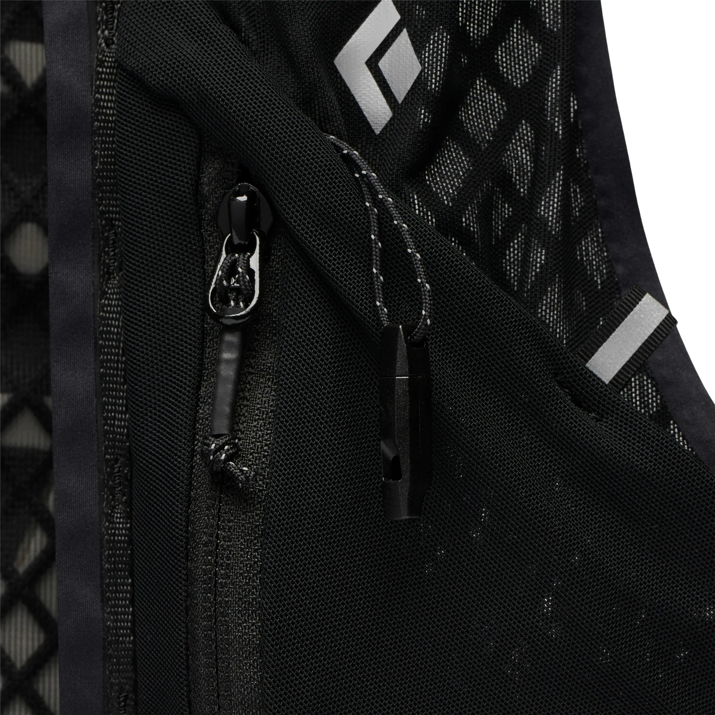 Plecak jest wyposażony w zintegrowane uchwyty na kije Z-pole, dwie kieszenie na soft flask (butelki nie są dołączone), jedną kieszeń na zamek błyskawiczny i dwie elastyczne kieszenie na szelkach, dwie kieszenie boczne oraz wewnętrzną kieszeń na zamek błyskawiczny z pętelką na klucze. Nie brakuje również uchwytu na czekany. Pojemność wynosi 15 litrów, a waga około 300 g (rozmiar S).