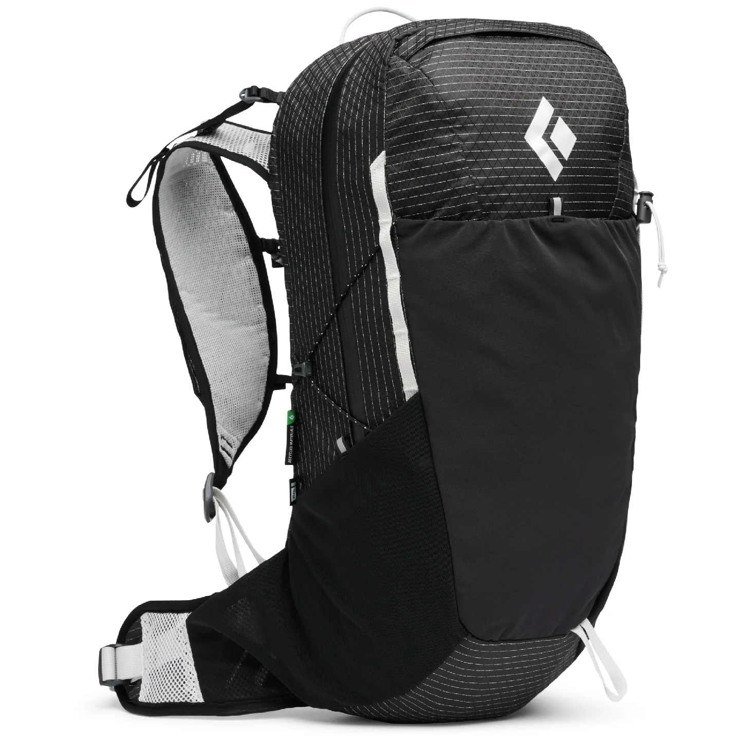 Plecak oferuje intuicyjne rozmieszczenie kieszeni – łatwo dostępne kieszenie boczne, elastyczne kieszenie do przechowywania sprzętu w ruchu i uchwyt na Z-kijki. Nie brakuje zewnętrznej kieszeni na bukłak i oddychającego panelu tylnego. Pojemność wynosi 25 litrów, waga około 668 g (rozm. S/M) i plecak jest wykonany w 100% z materiałów pochodzących z recyklingu, zarówno materiału głównego, jak i podszewki.