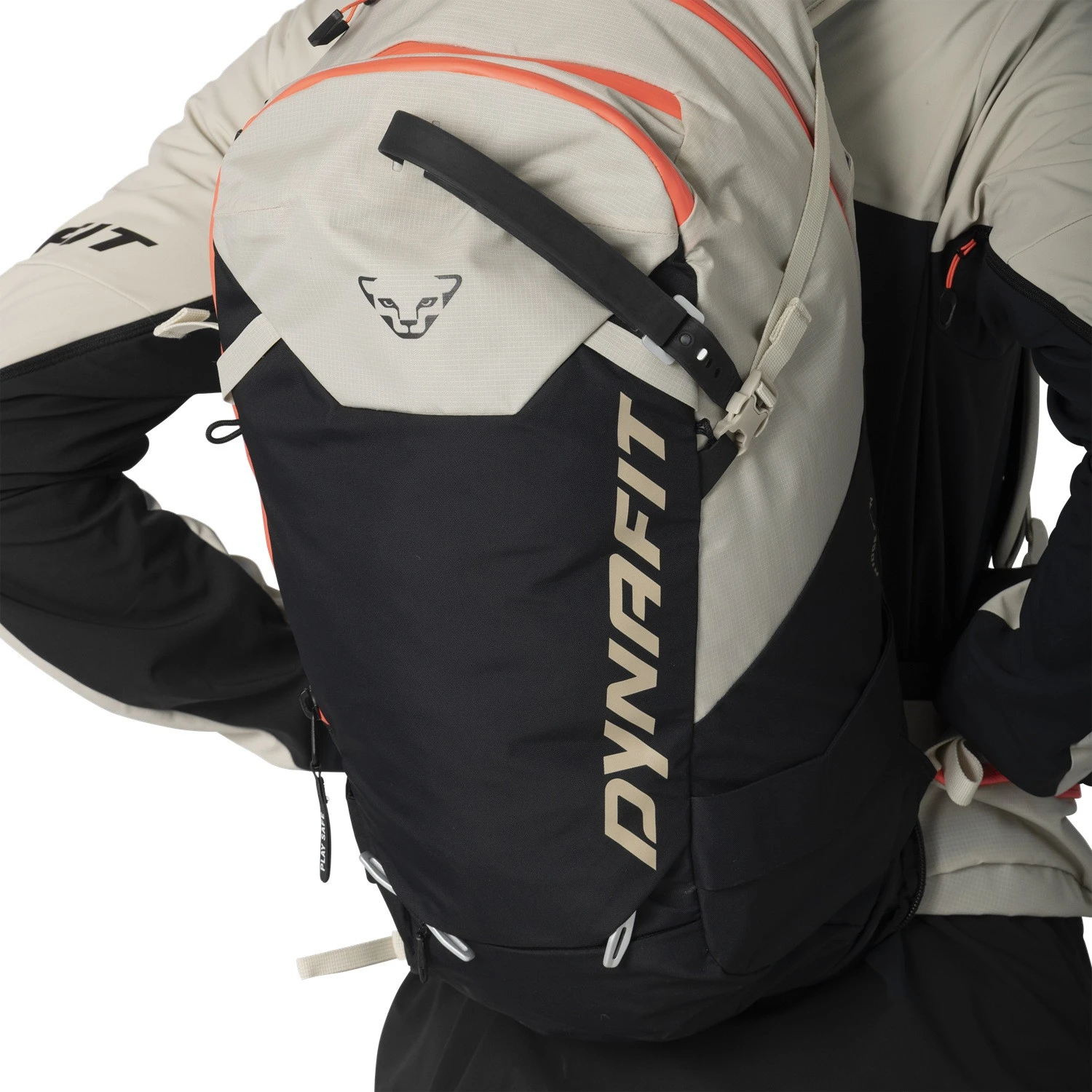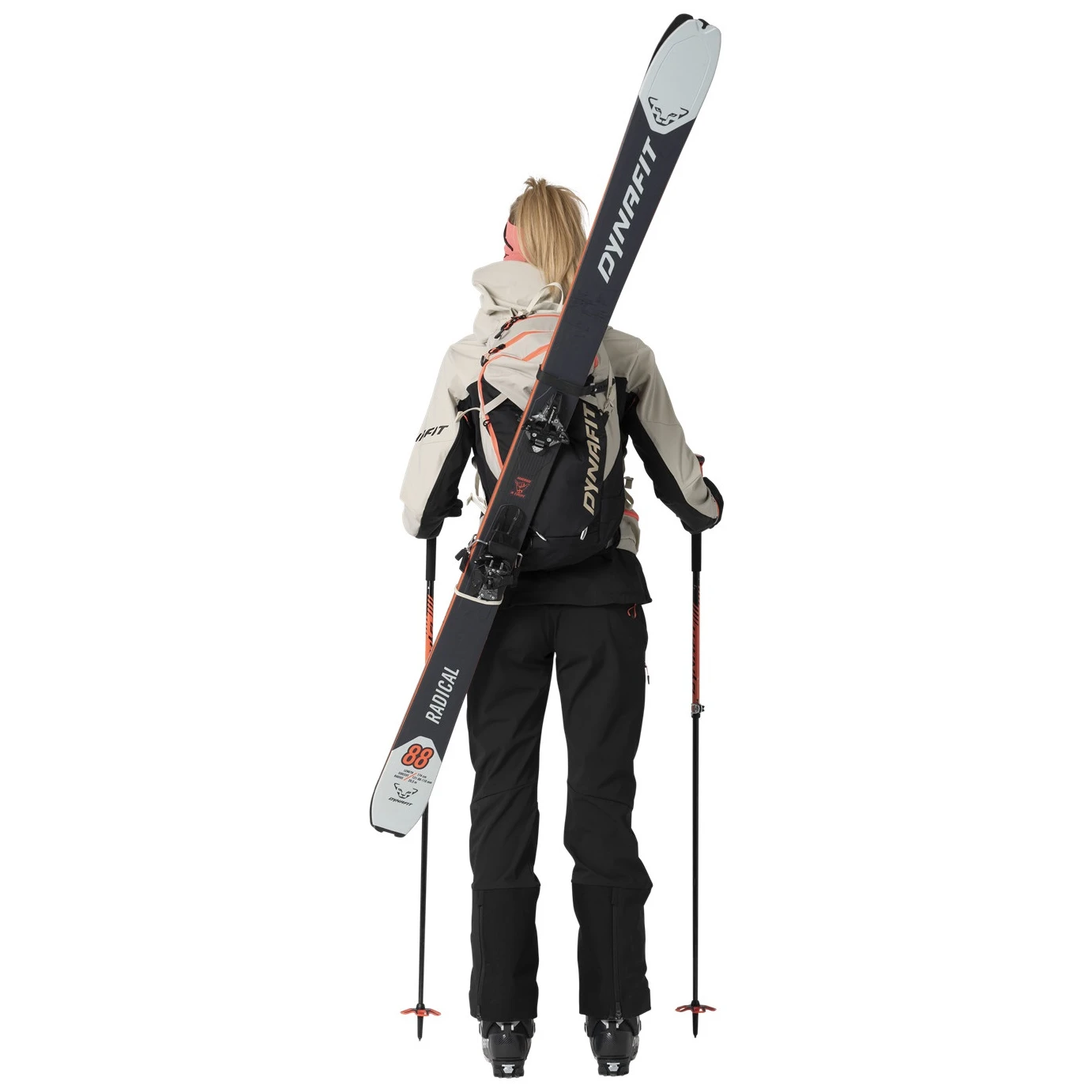 Plecak Ridge 24 Backpack W marki Dynafit ma dużo przestrzeni do przechowywania i sprytny układ. Oddzielna komora na raki chroni Twój sprzęt i umożliwia szybki dostęp. Dodatkowe przegrody na sprzęt bezpieczeństwa i uchwyty na narty, kaski i czekany utrzymują rzeczy w porządku. Dobrze wentylowany system nośny oferuje wysoki poziom komfortu, a wytrzymały materiał Cordura® z nylonu pochodzącego z recyklingu z łatwością wytrzymuje kontakt z kamieniami.