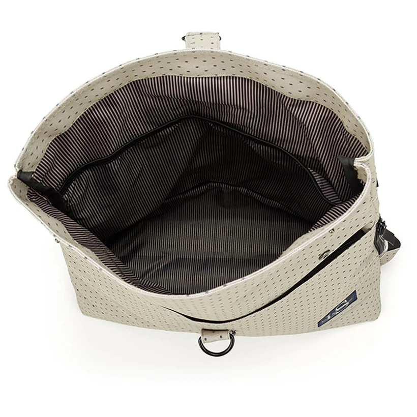 Dla łatwego noszenia wyposażony jest w tekstylny uchwyt na górze i paski na ramiona, które wygodnie układają się na ramionach. Oprócz komory głównej plecak ma zewnętrzną kieszeń boczną i wewnętrzną kieszeń dla lepszej organizacji drobiazgów. Pielęgnacja jest bardzo prosta – wystarczy umyć mydłem i przetrzeć wilgotną szmatką lub gąbką.
