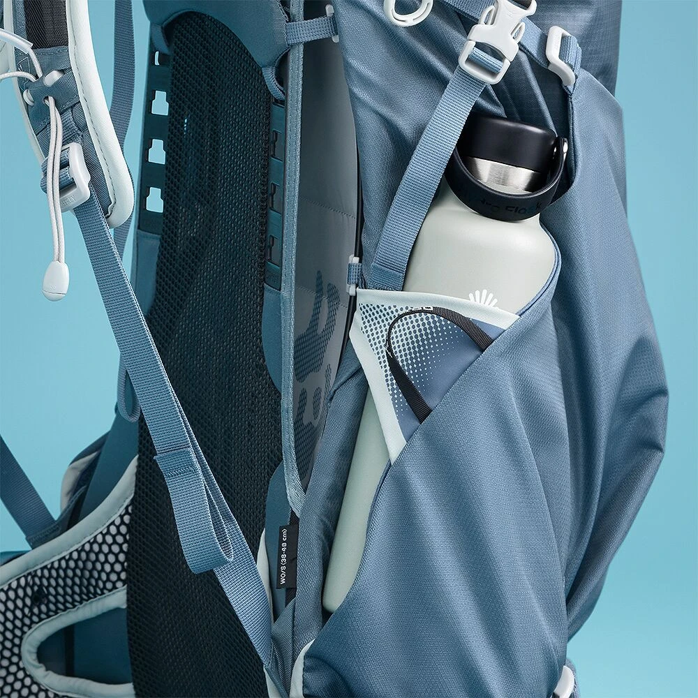 Główna komora zamykana na rolkę i zgrzewanymi szwami RF gwarantuje niezawodną ochronę przed wodą, podczas gdy zewnętrzne kieszenie z szybkoschnących materiałów ułatwiają dostęp do potrzebnych rzeczy. Praktyczne detale, takie jak boczne paski kompresyjne, uchwyt na kije trekkingowe Stow-on-the-Go, dwie zapinane na zamek kieszenie na pasie biodrowym lub oddzielna kieszeń na bukłak sprawiają, że Downburst™ jest idealnym wyborem dla aktywnych kobiet, które chcą pozostać w ruchu – i w suchym.