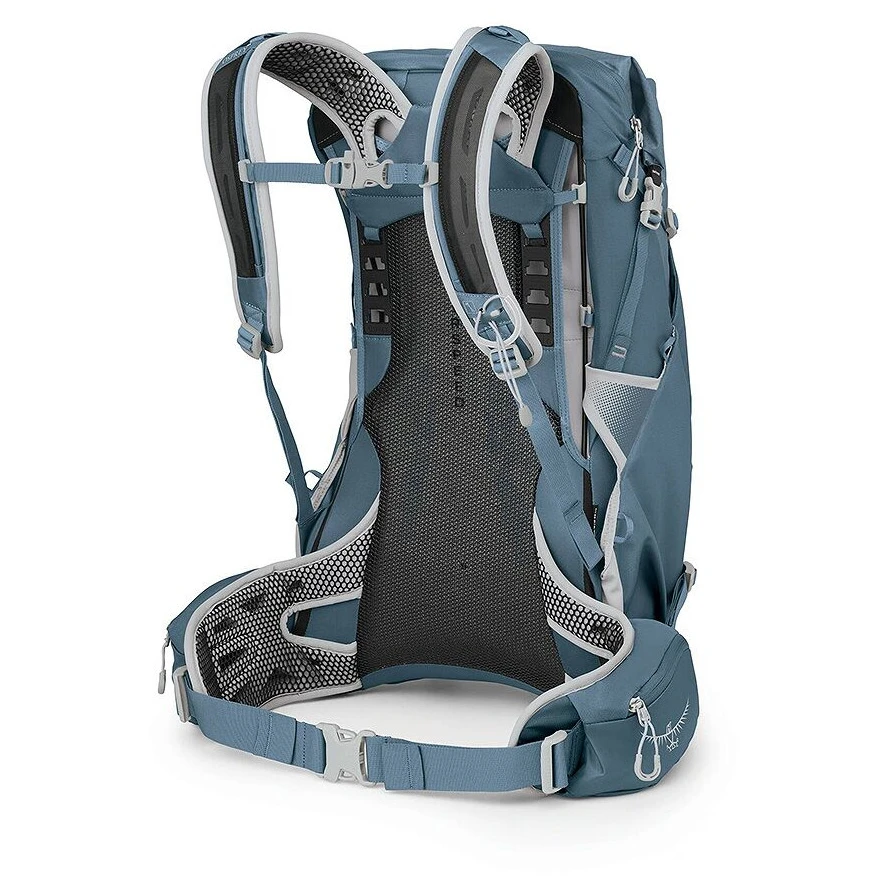 Ten wytrzymały i funkcjonalny damski plecak łączy wyjątkowo oddychający system nośny AirSpeed™ z wodoodporną konstrukcją komory głównej (IPX5), dzięki czemu Twój sprzęt pozostanie suchy nawet podczas ulewnych deszczy. Wykonany w 100% z nylonu pochodzącego z recyklingu z certyfikatem bluesign®, łączy materiały przyjazne dla środowiska z techniczną doskonałością, z której słynie Osprey.