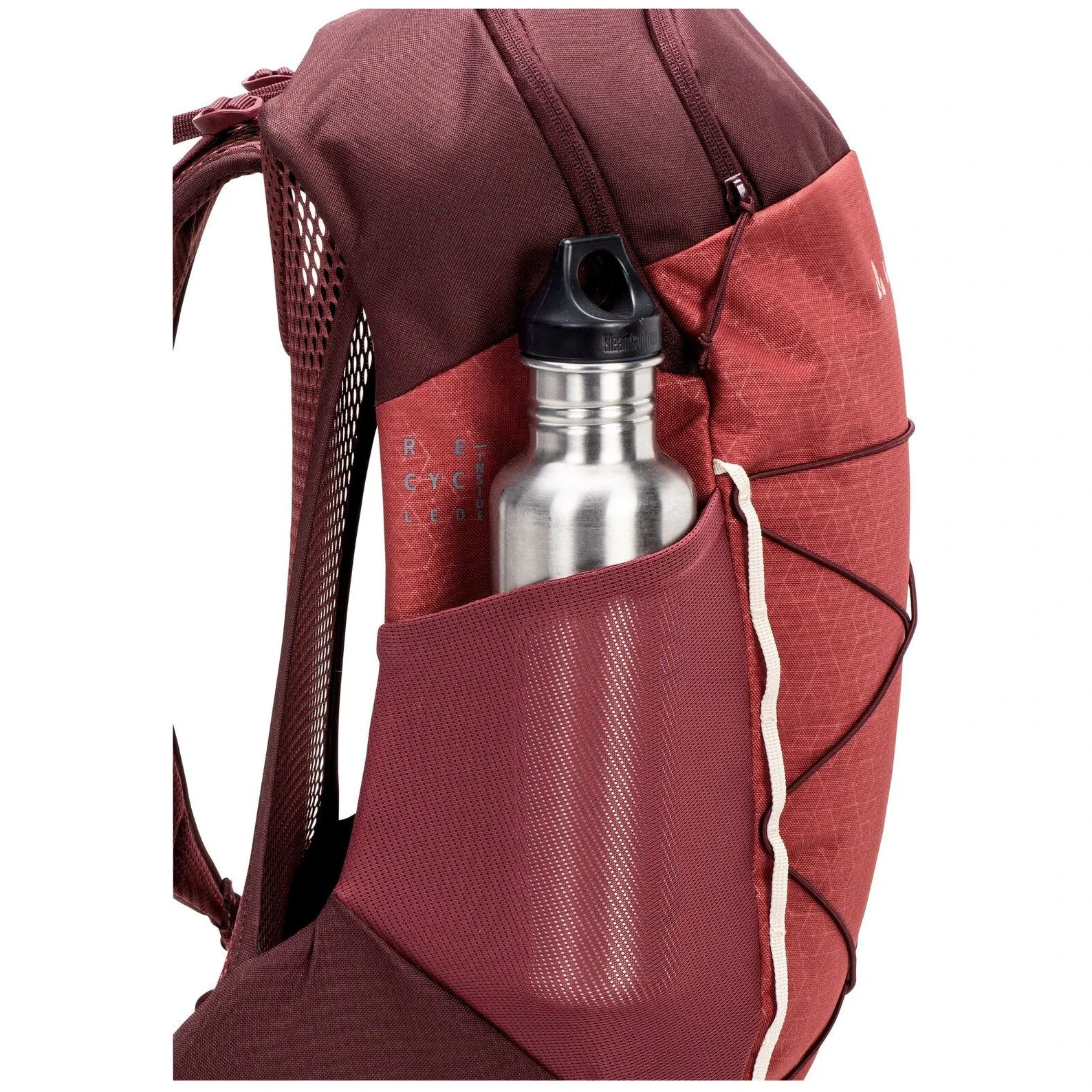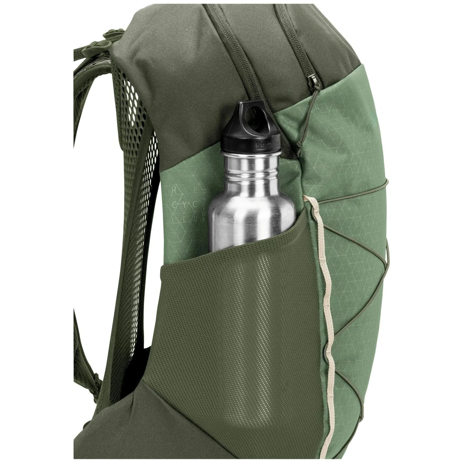 Plecak zawiera komorę główną, przednią i boczną kieszeń na zamek błyskawiczny, elastyczny sznurek do mocowania sprzętu i uchwyt na kije trekkingowe. Odpinany pas biodrowy i pas piersiowy zapewniają stabilne noszenie. Wykonany w 100% z poliestru pochodzącego z recyklingu z hydrofobową powłoką Eco Finish bez PFC, co oszczędza energię i zmniejsza emisję CO2.