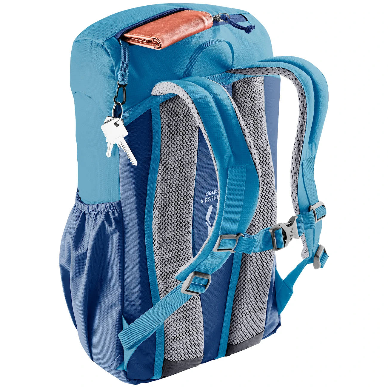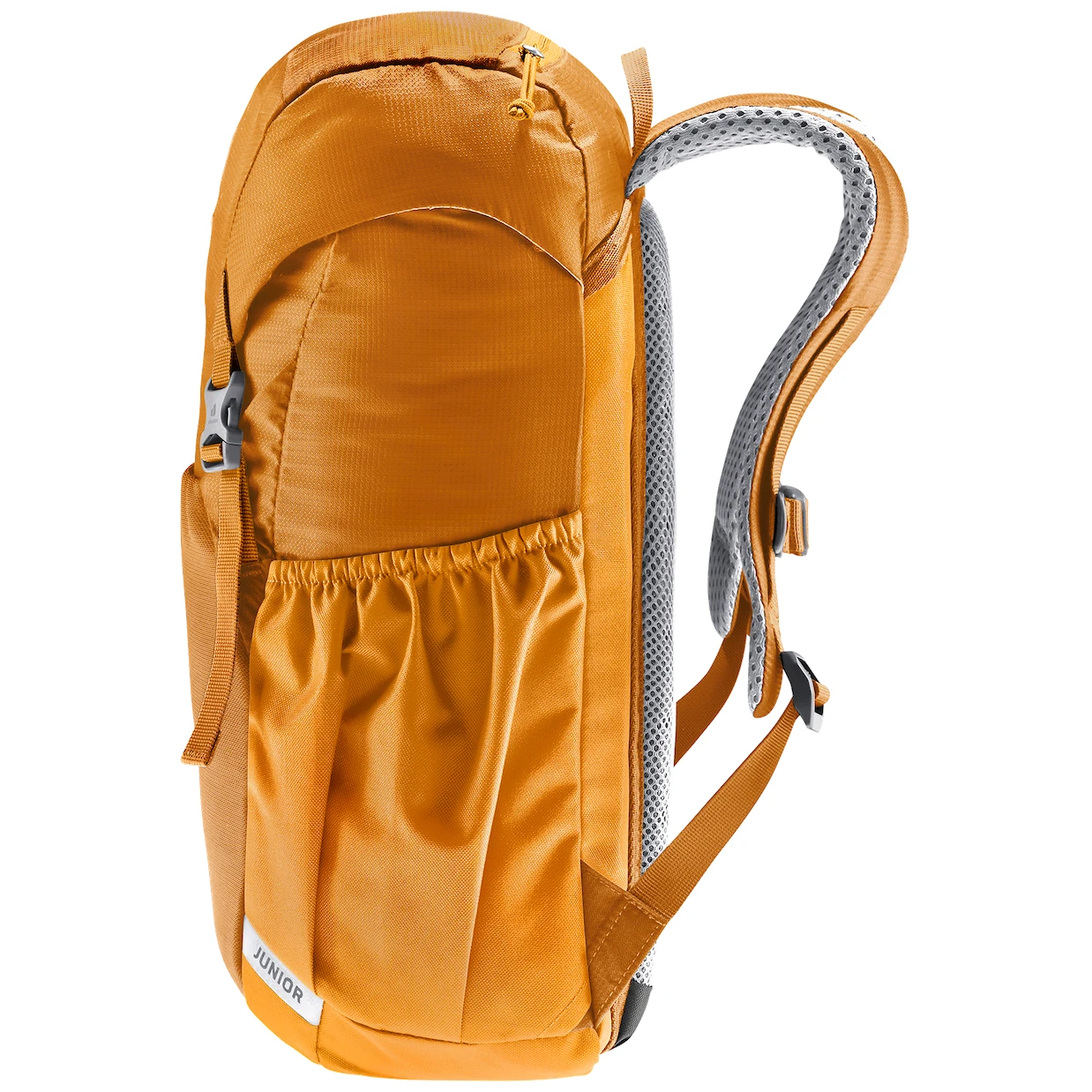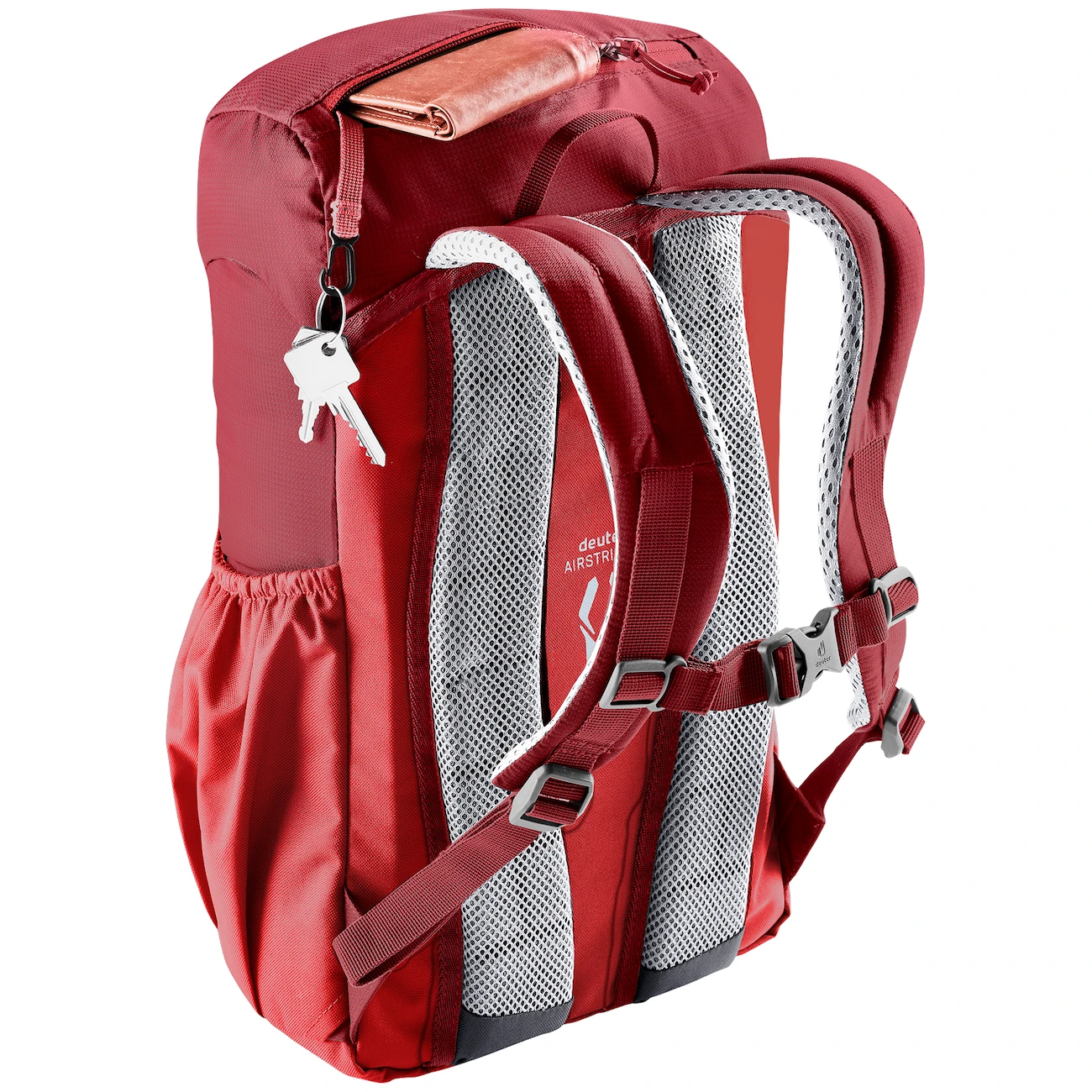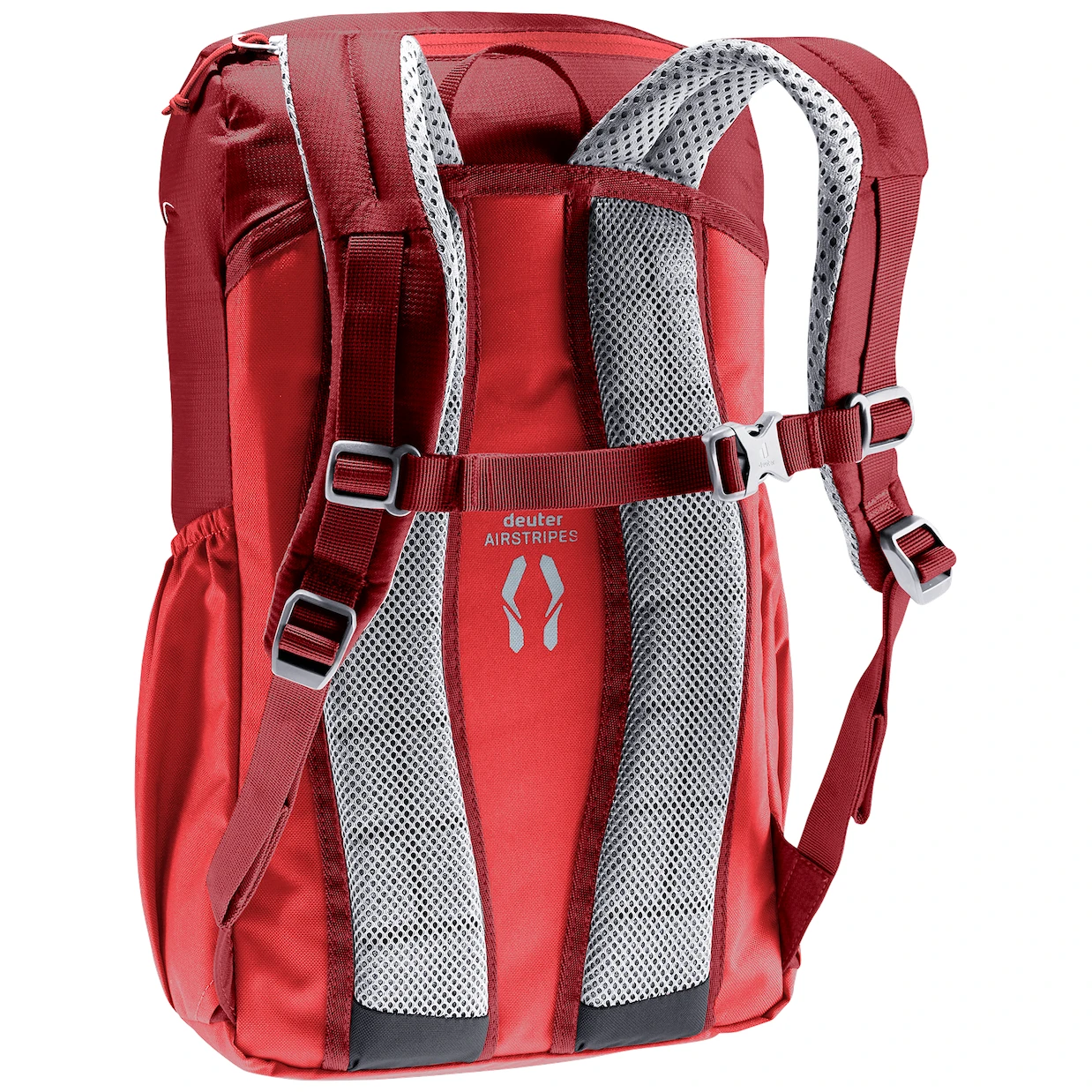 Plecak dziecięcy Junior marka Deuter wykonana jest w prostym kroju z mocnego i odpornego na ścieranie materiału. Wygodę zapewnia wyściełany tył i system oparcia Airstripes. Anatomicznie ukształtowane paski na ramiona i regulowany pasek na klatkę piersiową zapewniają stabilne ułożenie i swobodę ruchów. Plecak jest dobrze wentylowany i docenisz dużą przestrzeń do przechowywania, zwłaszcza przednią kieszeń zapinaną na zamek, pokrywę z kieszenią, kieszenie boczne i mokrą kieszeń. Oferuje również pętlę na klucze i odblaskowe naszywki, aby zwiększyć bezpieczeństwo dzieci.
