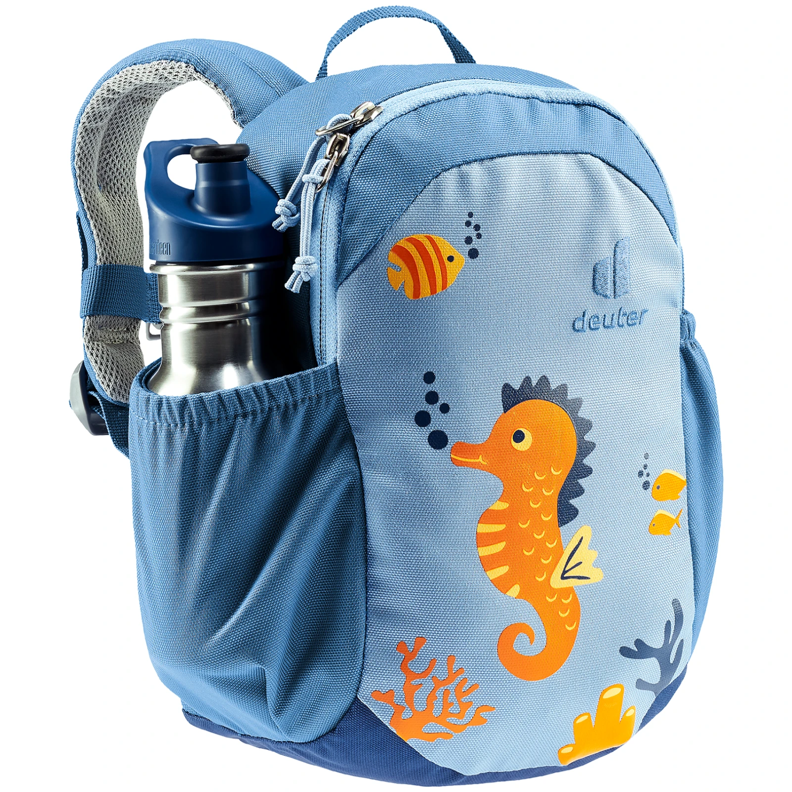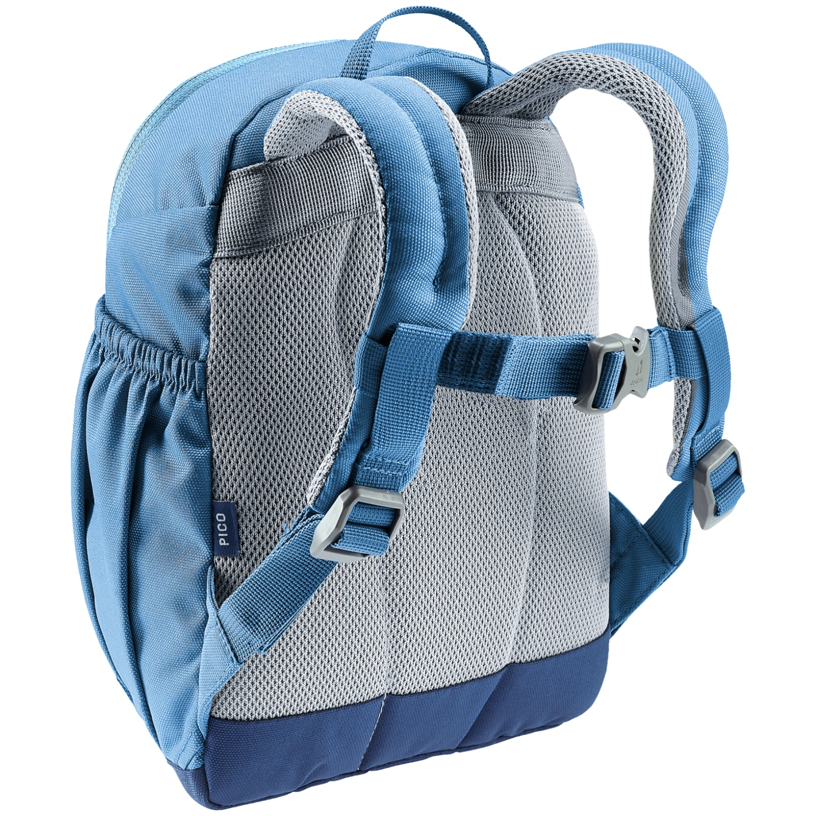 Dziecięcy plecak Pico marki Deuter zachwyca wspaniałym designem z jasnymi kolorami dla dziewczynki i chłopca już od 2 lat. Wygodę zapewniają paski naramienne Soft-Edge w kształcie litery S oraz komfortowa wyściółka. Stabilność i pewne umiejscowienie umożliwia pas piersiowy. Plecak oferuje przyjazne dzieciom klamry, przestronną kieszeń główną, dwie boczne kieszenie z siatki i pasek na górze plecaka. Łatwy dostęp do plecaka jest gwarantowany dzięki zakrzywionemu zamkowi błyskawicznemu, a jako bonus znajduje się w nim metka z imieniem.