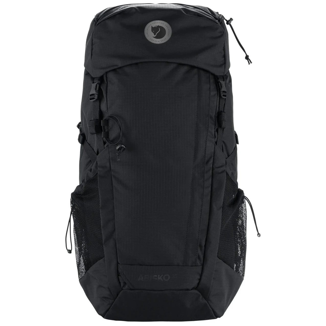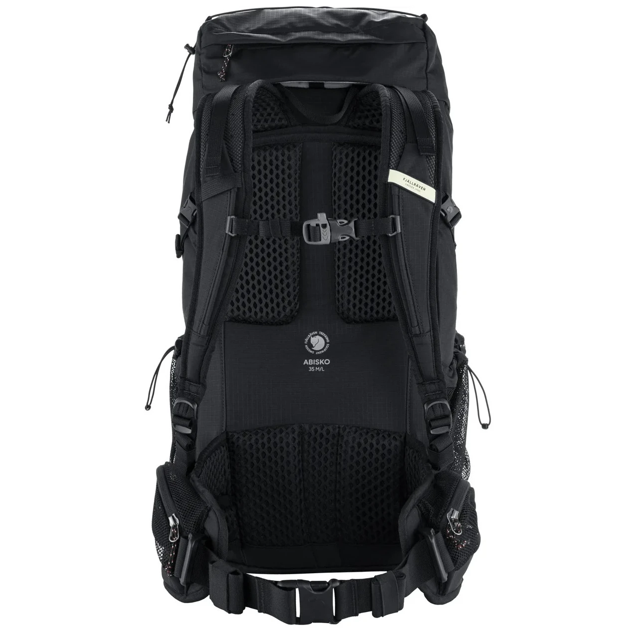Abisko Hike 35 to wszechstronny plecak turystyczny idealny na wędrówki od schroniska do schroniska i lekkie wycieczki. Wykonany w 100% z nylonu pochodzącego z recyklingu plecak ma regulowaną długość pleców, oddychający panel tylny z siatki, paski na ramiona i pas biodrowy. Posiada przestronną komorę główną z górnym wypełnieniem i przednim wejściem oraz górną pokrywę ze sznurkiem i dwiema kieszeniami zapinanymi na zamek. Wewnątrz głównej komory znajdują się dwie kieszenie i jedna kieszeń zapinana na zamek, które są łatwo dostępne przez przednie otwarcie lub od góry. Dwie większe kieszenie boczne doskonale nadają się do przechowywania butelek. Pozostałe dwie kieszenie znajdują się na pasie biodrowym. Zawiera uchwyty do mocowania kijków turystycznych lub czekana z przodu plecaka. Jest kompatybilny z systemem nawadniającym.