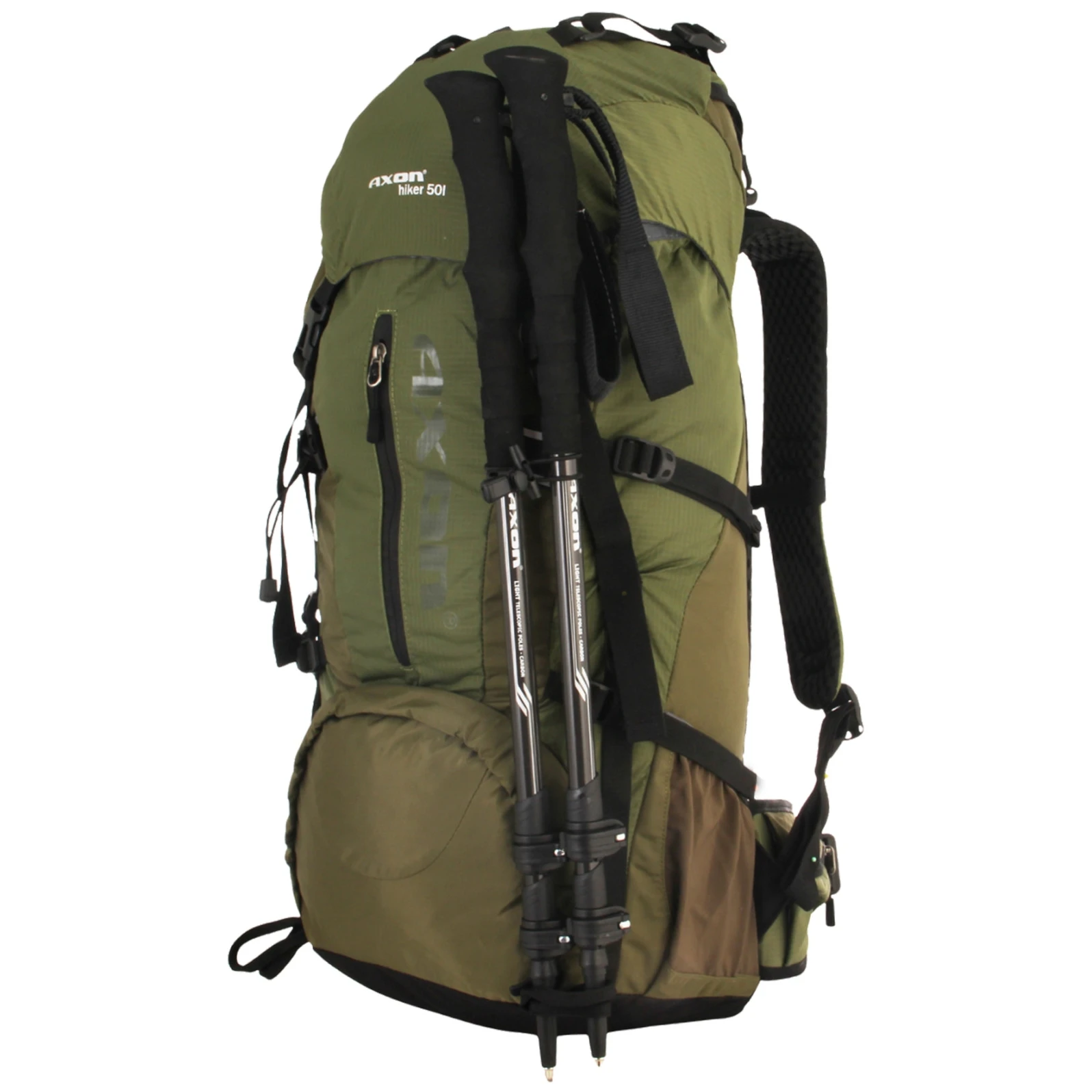 Plecak Hiker czeskiej marki AXON ma wentylowane, wyściełane plecy AVS. Paski naramienne z elementami balansującymi ramiona ze wzmocnioną wyściółką są anatomicznie ukształtowane z paskiem piersiowym o regulowanej wysokości z gwizdkiem. Wyściełany pas biodrowy z kieszeniami zapinanymi na zamek i boczne paski kompresyjne zapewniają pewne i wygodne dopasowanie do pleców.