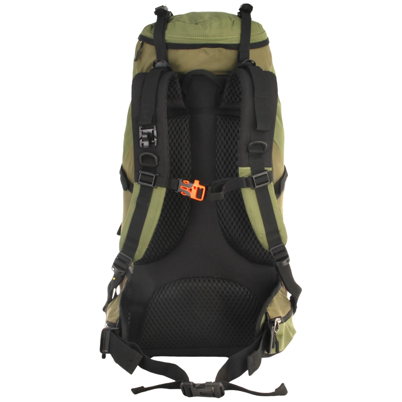 Duża komora główna ma również dolne wejście z możliwością podziału na dwie części z wewnętrzną kieszenią na bukłak. Górna klapa plecaka ma dwie kieszenie na zamek i paski mocujące, np. na karimatę. Plecak posiada również przednią kieszeń zapinaną na zamek i dwie boczne kieszenie wykonane z elastycznego materiału.