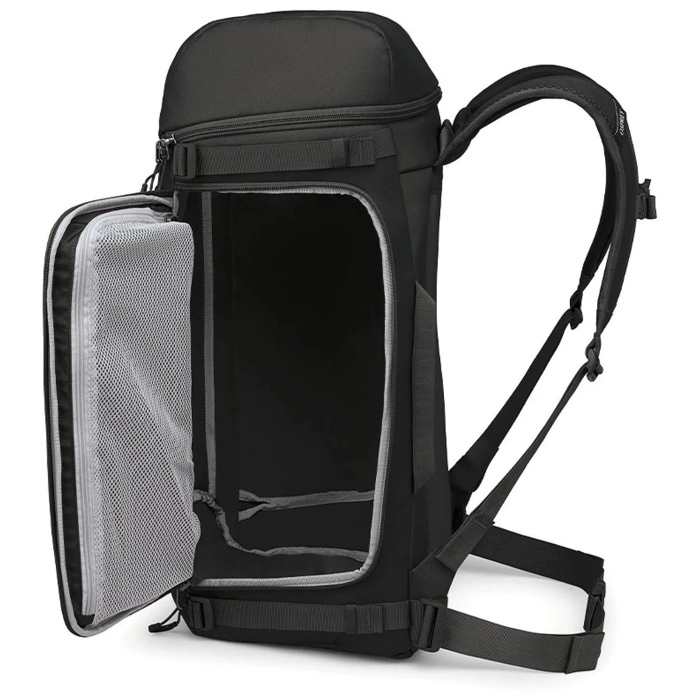 Wykonany z niezwykle wytrzymałej i wodoodpornej tkaniny NanoTough™ ochroni Twój sprzęt nawet w trudnych warunkach pogodowych. Komora główna z wyściółką bezpiecznie pomieści buty narciarskie i sprzęt, a górna przegroda służy do przechowywania kasku, gogli lub innych akcesoriów. Technologia AirScape™ zapewnia wygodne i oddychające noszenie. W zestawie znajduje się również praktyczna, wyściełana mata ułatwiająca zdejmowanie i zakładanie butów w terenie.