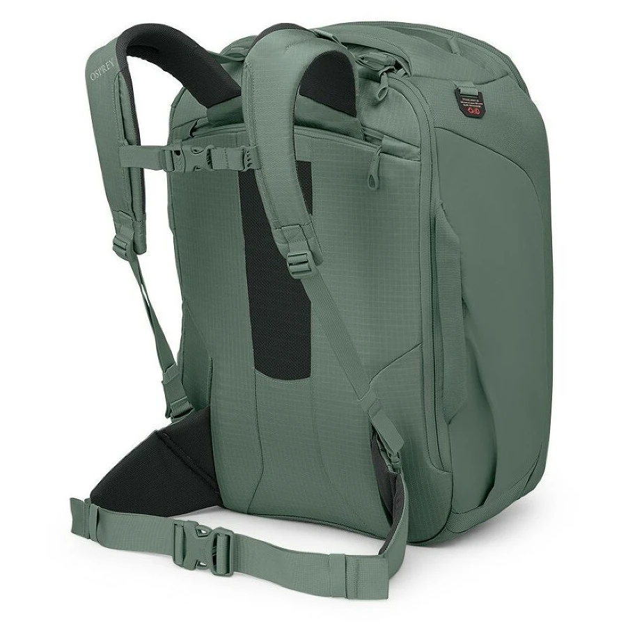 Torba podróżna Sojourn Porter 46 od marki Osprey to idealny wybór dla entuzjastów podróży poszukujących niezawodnego partnera do przechowywania całego swojego sprzętu. Główną atrakcją jest system regulacji wysokości pleców, który zamienia torbę w wygodny plecak. Można ją przechowywać/składać w oddzielnej kieszeni zapinanej na zamek na wypadek transportu lub odprawy na lotnisku. System szelek składa się z oddychających i wyściełanych pasów naramiennych z pasem piersiowym oraz pasa biodrowego z klamrą ErgoPull. Kilka wyściełanych uchwytów, które są umieszczone na całym obwodzie torby, zapewnia wygodne przenoszenie, na przykład podczas odprawy lub załadunku do samochodu.