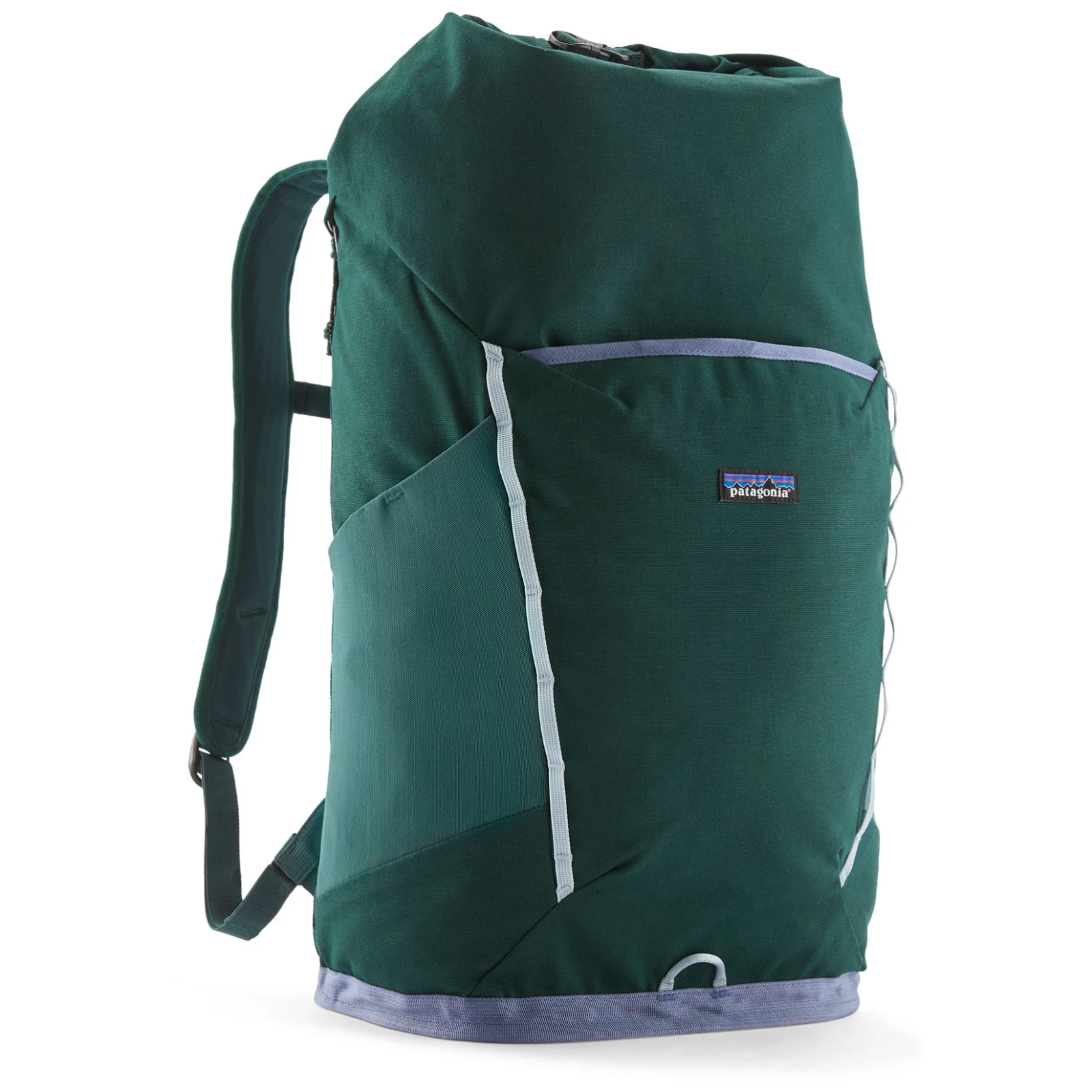Patagonia Fieldsmith Roll-Top Pack 32L jest przeznaczony do codziennego użytku w mieście i do bardziej wymagających przygód na świeżym powietrzu. Regulowana objętość dzięki zwijanemu zamknięciu, które zapewnia również zwiększoną ochronę przed wilgocią, umożliwia przechowywanie ładunków o różnych rozmiarach. Wewnętrzna komora na laptopa 15" jest również dostępna za pomocą bocznego zamka błyskawicznego i może również służyć jako komora na bukłak. Górna kieszeń zapinana na zamek i dwie elastyczne kieszenie po bokach służą do przechowywania małych przedmiotów. Pętle na zewnątrz umożliwiają zawieszenie dodatkowego sprzętu. Plecak jest wykonany z wytrzymałej bawełny organicznej z wodoodpornym wykończeniem. Oddychający panel tylny z siateczki jest wygodny nawet podczas całodziennego noszenia. Wyprodukowano go w fabryce posiadającej certyfikat Fair Trade Certified™, co oznacza, że ludzie, którzy wyprodukowali ten produkt, otrzymali uczciwe wynagrodzenie za swoją pracę.