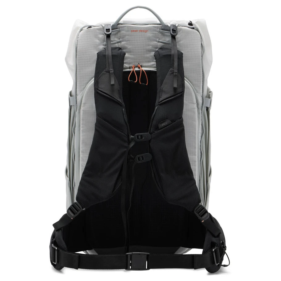 Plecak jest w pełni kompatybilny z szeroką gamą organizerów Peak Design, które pozwalają dostosować przestrzeń wewnętrzną do każdego rodzaju wyprawy – czy to fotograficznej w górach, wielodniowego trekkingu, czy minimalistycznego podróżowania. Paski naramienne inspirowane kamizelkami do biegania równomiernie rozkładają obciążenie i zapewniają komfort nawet podczas dłuższego noszenia. Dwie elastyczne kieszenie umożliwiają szybki dostęp do niezbędnych rzeczy, takich jak telefon czy soft flask, a jednocześnie ukrywają punkty mocowania dla Capture Clip.