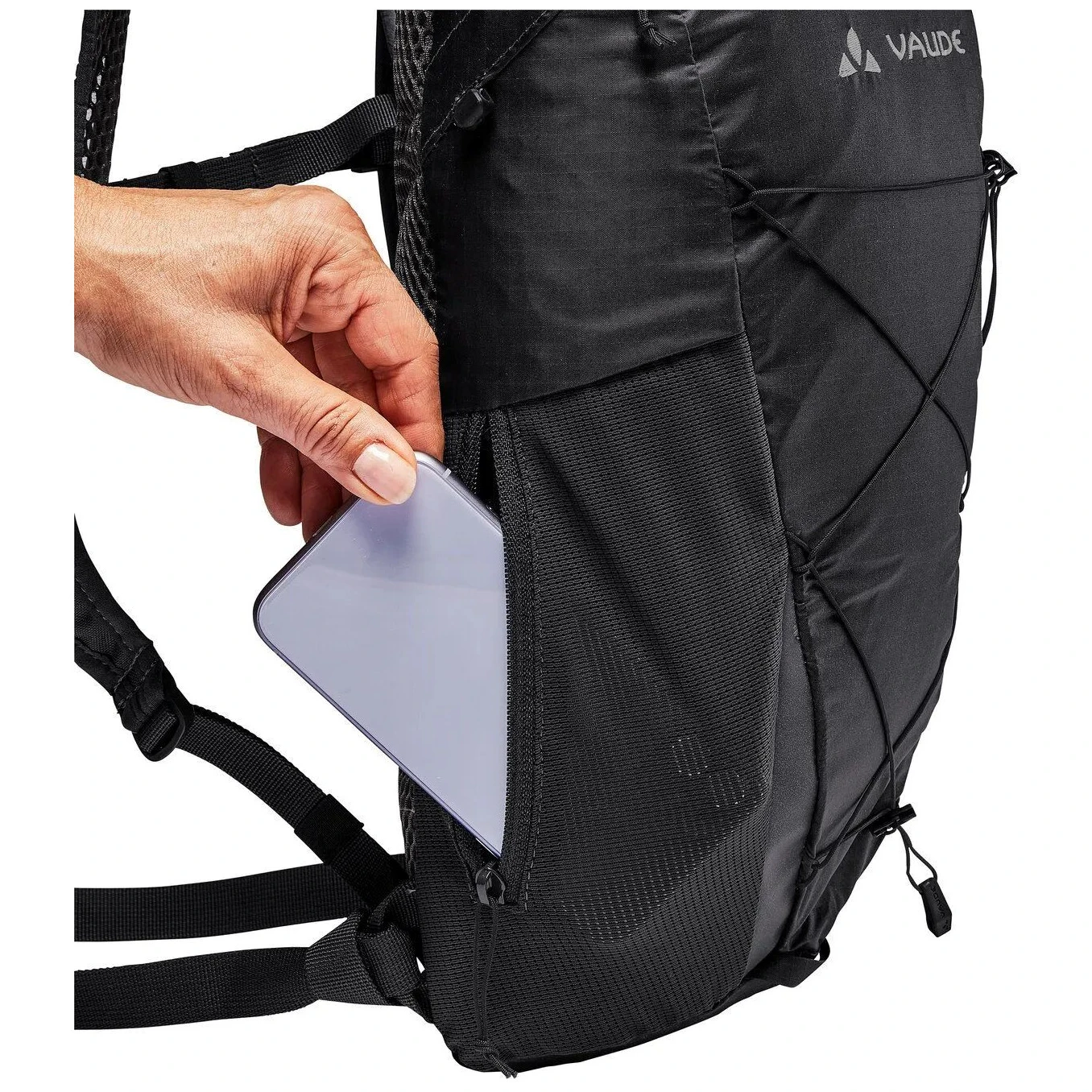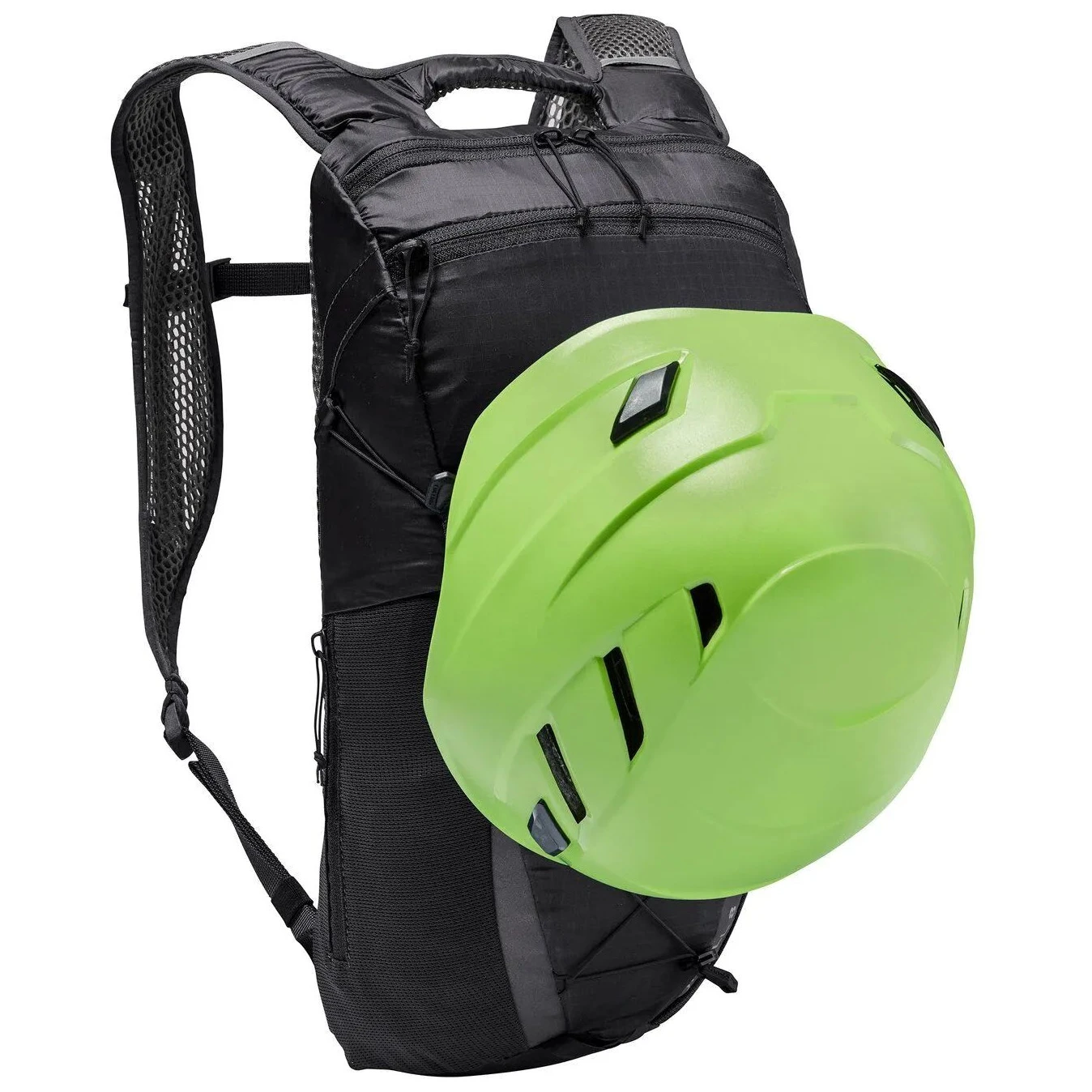 Główna kieszeń z asymetrycznym otworem zapewnia wystarczająco dużo miejsca na wszystko, co potrzebne. Praktyczny podział uzupełnia boczna kieszeń na zamek błyskawiczny, elastyczna kieszeń i przednia kieszeń na zamek błyskawiczny dla szybkiego dostępu do drobiazgów. Wielofunkcyjne sznurowanie 3w1 z przodu służy jako kompresja, uchwyt na kurtkę lub kask. Oczywistością jest otwór na system hydratacyjny, odpinany pas biodrowy, elementy odblaskowe i zintegrowany pokrowiec przeciwdeszczowy.