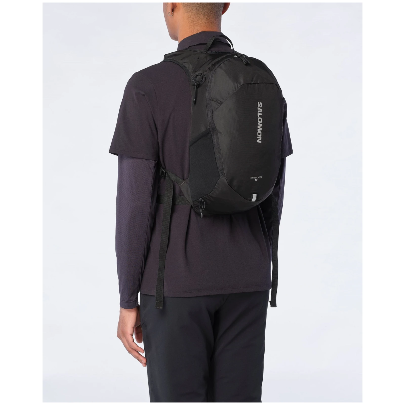 Minimalistyczny plecak Salomon Trailblazer 10 jest idealny na kilka niezbędnych rzeczy, które musisz zabrać ze sobą na krótką wędrówkę, spacer po mieście lub krótką przejażdżkę rowerem. Główna kieszeń jest doskonale dostępna dzięki długiemu zamkowi błyskawicznemu YKK. W górnej części plecaka znajduje się praktyczna kieszeń na drobne przedmioty, dzięki czemu można mieć pod ręką okulary przeciwsłoneczne lub klucze. Do plecaka można również przymocować kijki trekkingowe i umieścić w nim zestaw nawadniający, aby uzupełniać płyny podczas aktywności. Rurka bukłaka jest poprowadzona przez pasy naramienne.