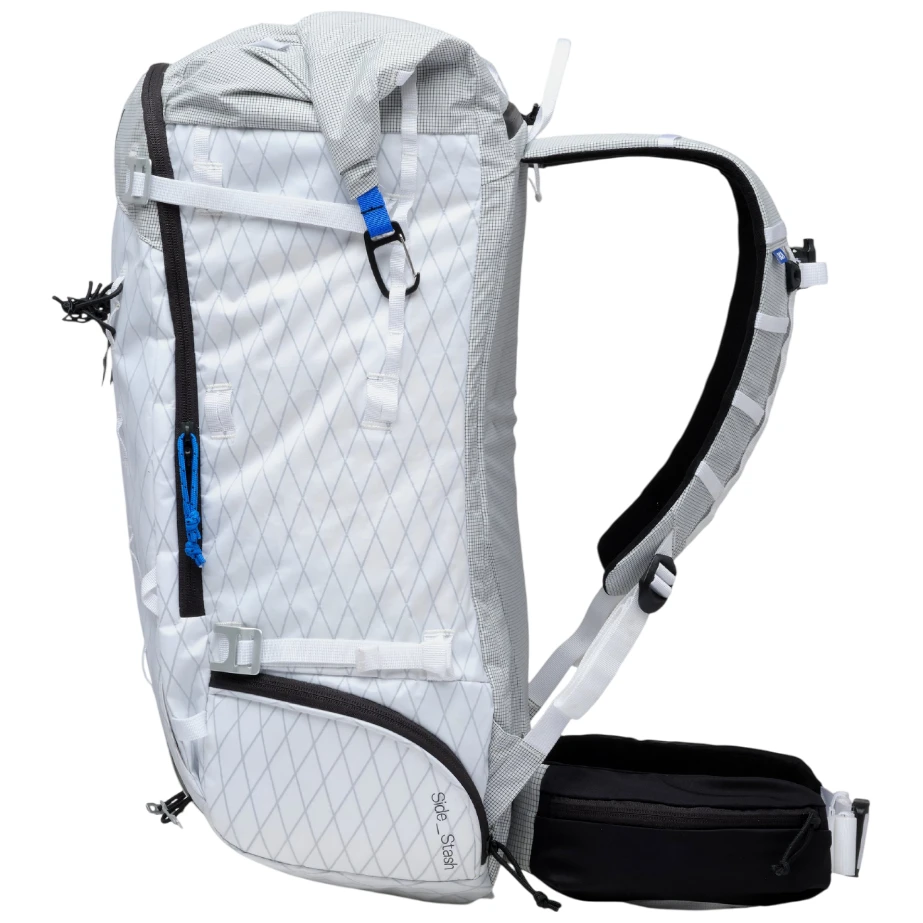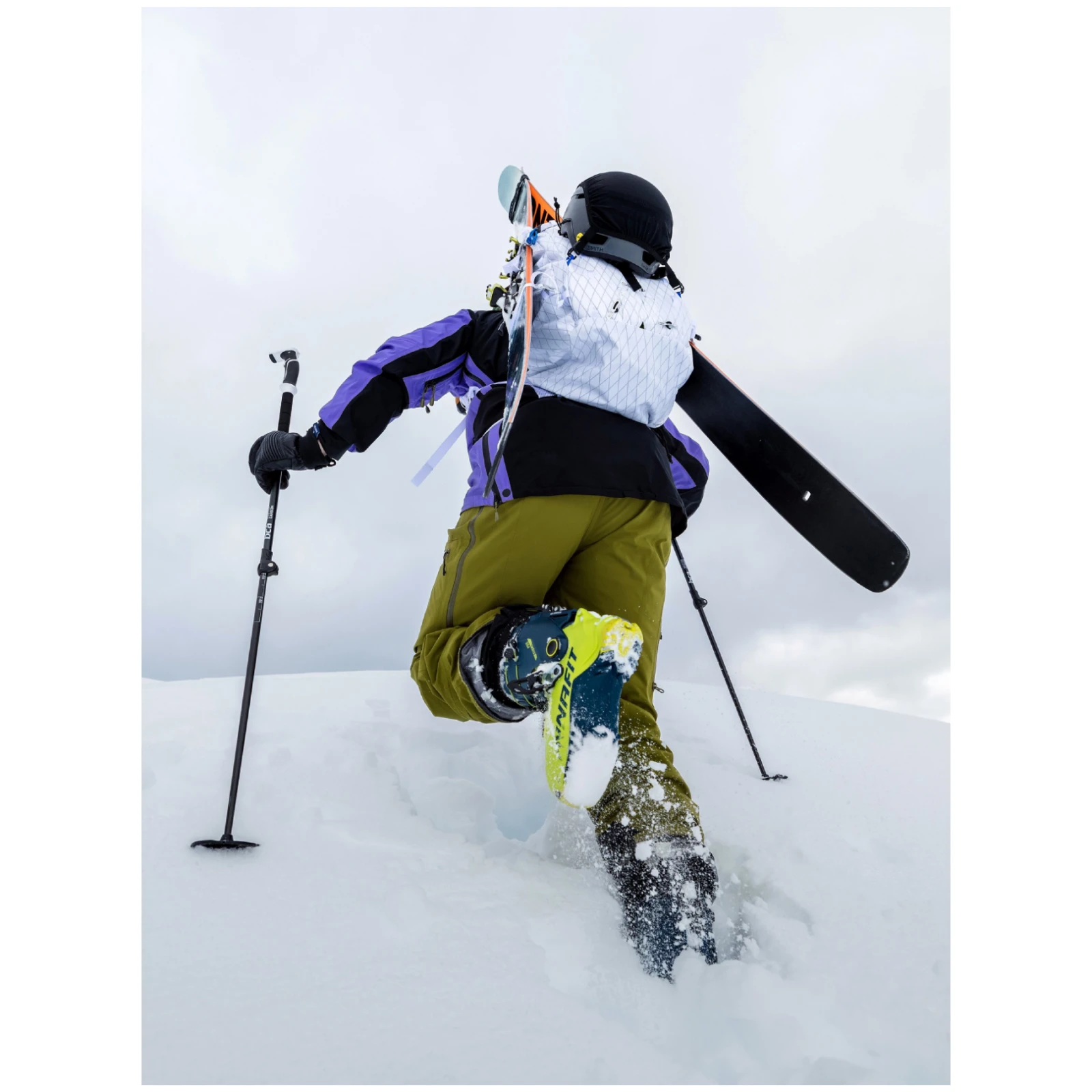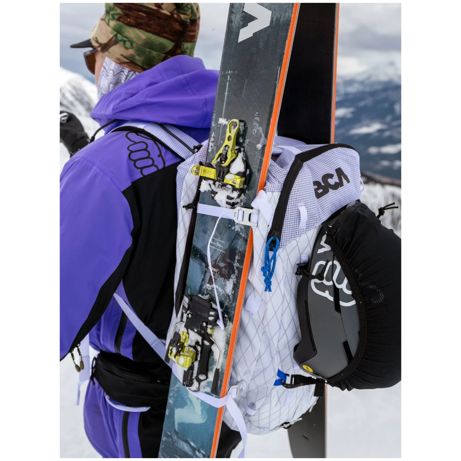 Konstrukcja plecaka zawiera wewnętrzny stelaż, który pomaga stabilizować ładunek, a jednocześnie oszczędza wagę. W bocznej kieszeni można bezpiecznie przechowywać mniejsze przedmioty, podczas gdy dedykowana przegroda jest przeznaczona na łopatę lawinową i sondę. Aby uzyskać dostęp do zawartości plecaka, dostępny jest boczny zamek błyskawiczny, dzięki czemu nie trzeba za każdym razem rozwijać całego zamknięcia, gdy czegoś szukasz. Plecak umożliwia również wygodne przenoszenie nart – posiada mocowania A-frame i diagonalne – oraz snowboardu za pomocą pionowego uchwytu.