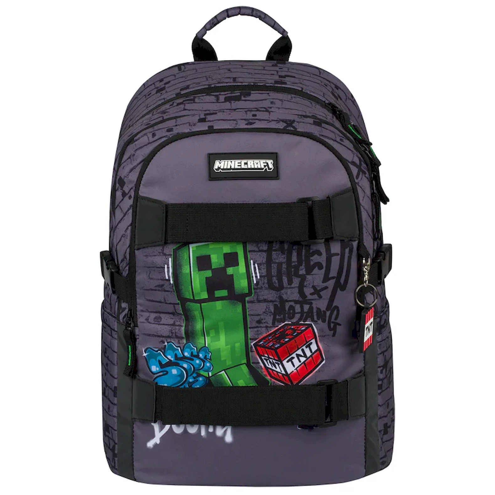 Plecak jest wykonany z mocnego i wodoodpornego materiału. Posiada trzy oddzielne komory na zamek błyskawiczny. Wewnątrz znajduje się praktyczny organizer i kieszeń na 15" notebook lub tablet. Dwie boczne kieszenie z siatki idealnie nadają się na butelkę z napojem. Z przodu znajdują się paski do mocowania deskorolki. Elementy odblaskowe umieszczone ze wszystkich stron zwiększają widoczność dziecka w warunkach słabego oświetlenia.