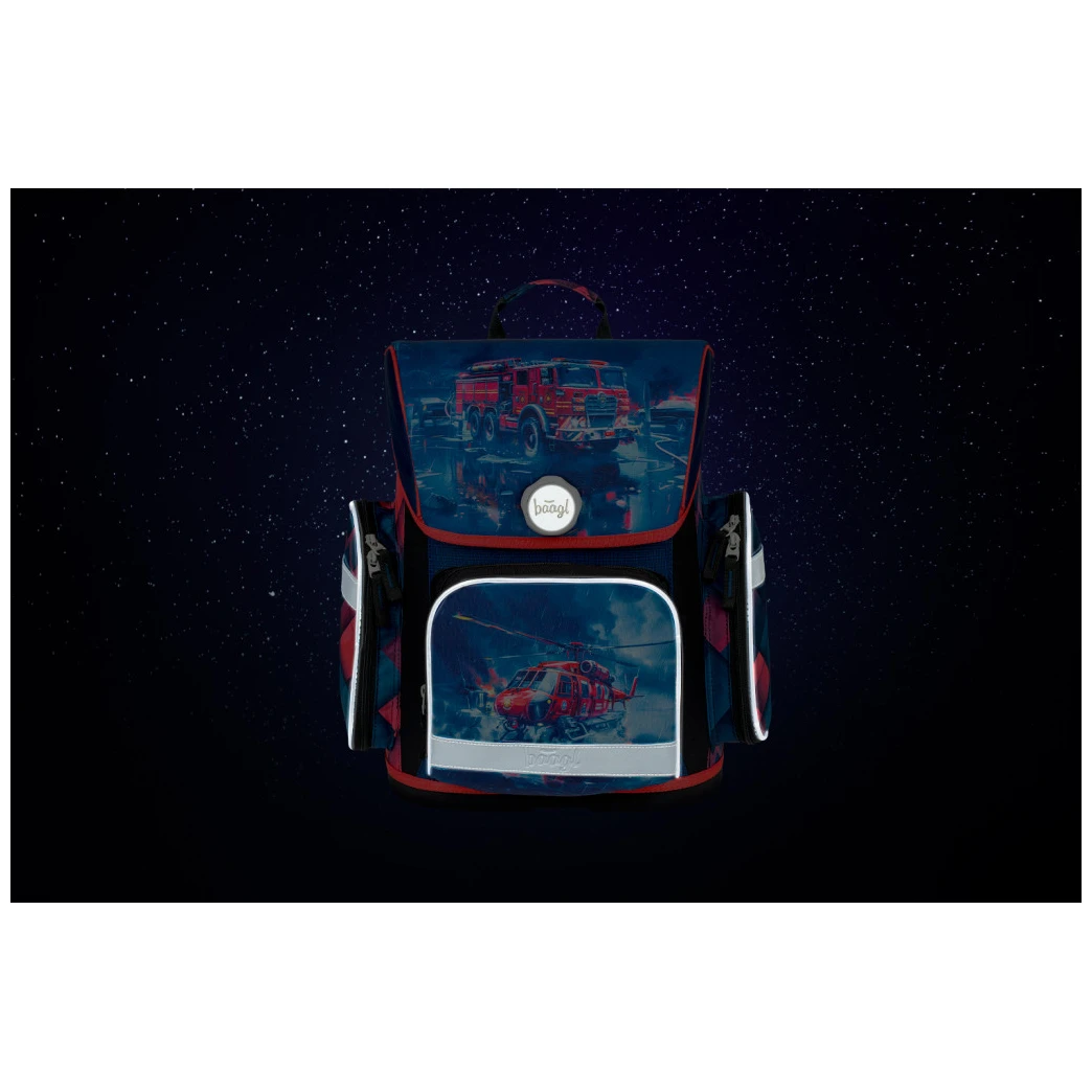 Plecak wykonany jest z mocnego i wodoodpornego materiału. Wzmocniona konstrukcja i sztywne dno utrzymują stabilny kształt w każdej sytuacji. Na zewnątrz znajduje się oddzielna przednia kieszeń na zamek oraz dwie boczne kieszenie na zamek, które idealnie nadają się na butelkę z piciem. Główna komora jest dostępna przez klapę z magnetycznym zapięciem Fidlock, które jest łatwe w obsłudze. Otwiera się poprzez obrócenie pokrętła, zamyka się automatycznie. Wewnątrz komory znajduje się organizer, który pomaga lepiej rozłożyć ciężar podręczników oraz przezroczysta kieszeń na plan lekcji. Elementy odblaskowe umieszczone ze wszystkich stron zwiększają widoczność dziecka w warunkach słabego oświetlenia.