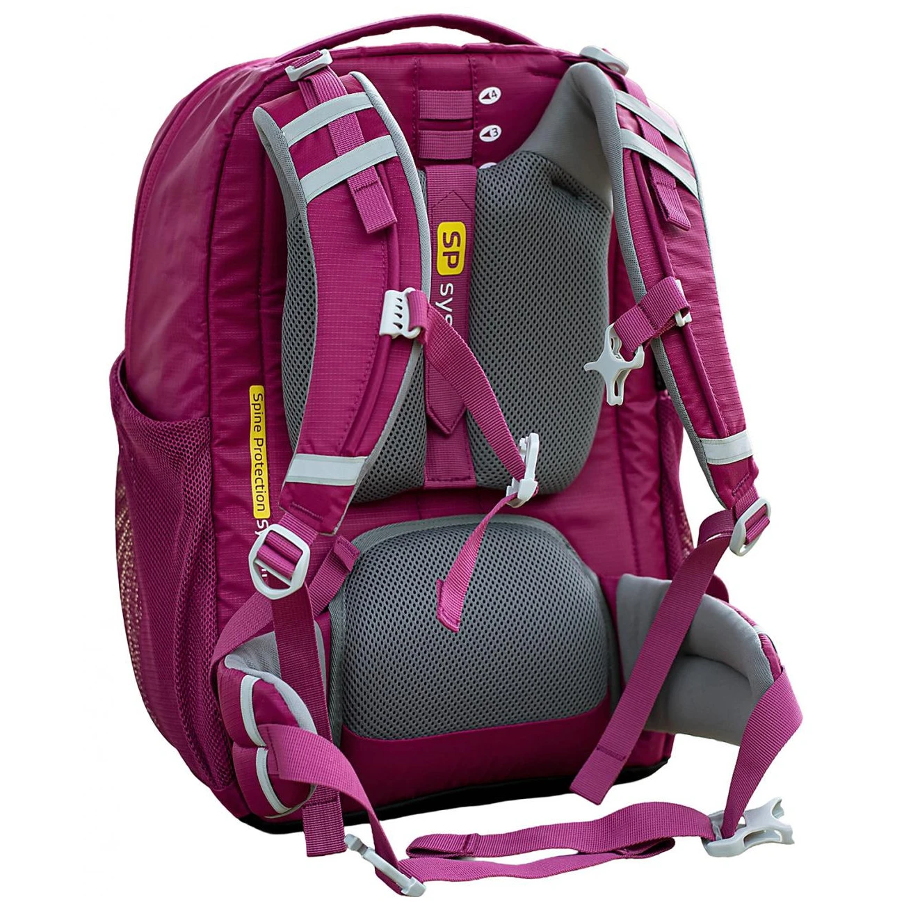 System SP gwarantuje zdrowe noszenie plecaka i minimalizuje negatywny wpływ na kręgosłup. Dodatkowymi zaletami są wygodne szelki, ergonomiczna konstrukcja z pasem biodrowym, która wspiera zdrowy rozwój kręgosłupa dziecka. Wyściółka lędźwiowa wykonana jest z przewiewnej i wygodnej siatki 3D. Dostępny jest również pasek piersiowy o regulowanej wysokości i długości.