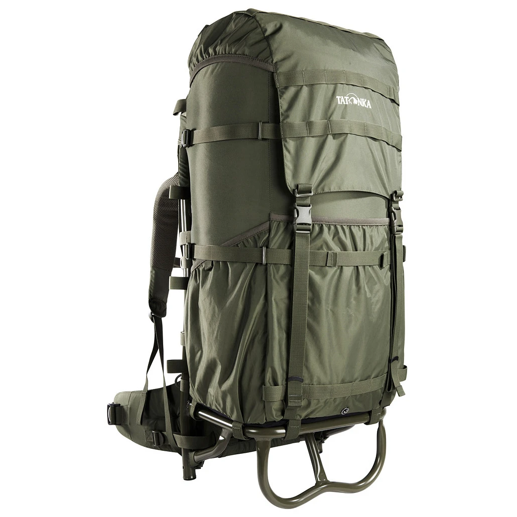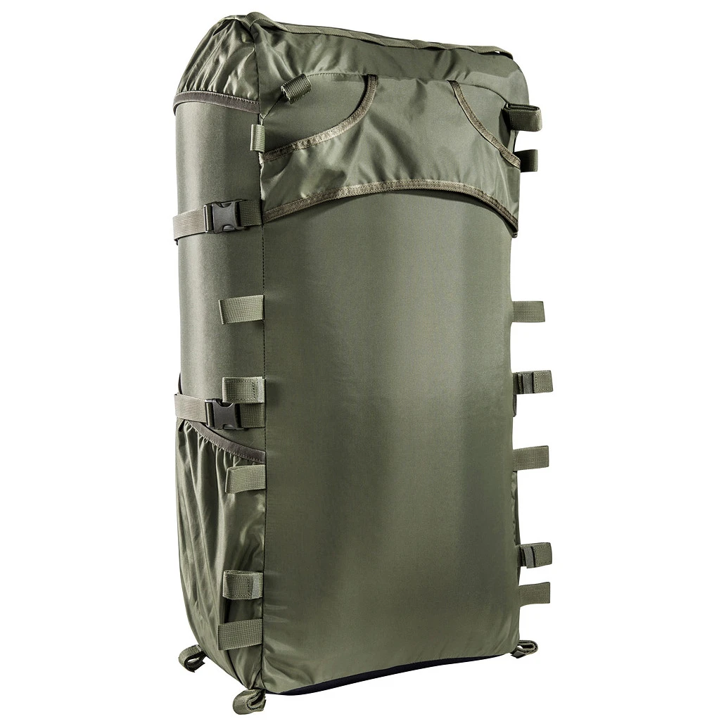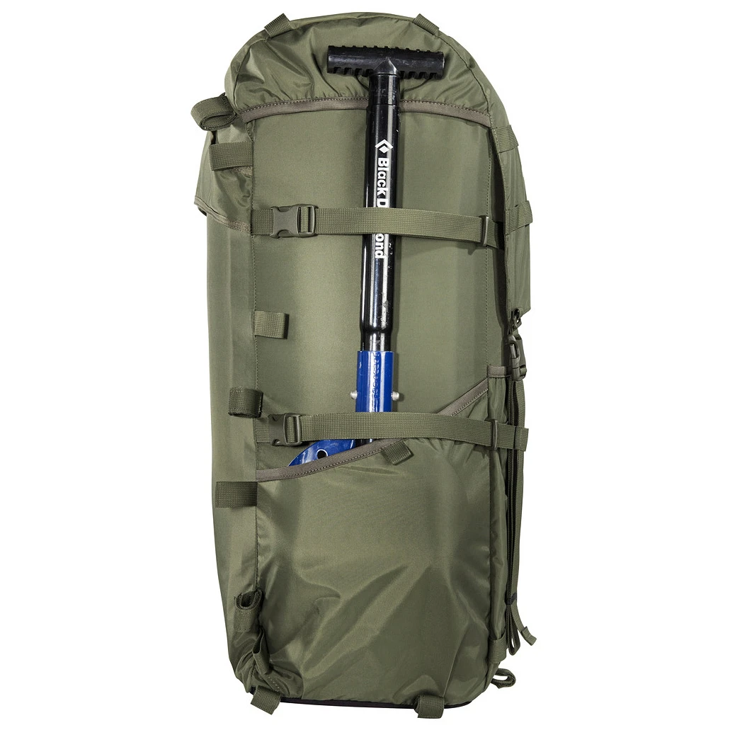 Oferuje duże kieszenie po bokach i z przodu, szlufki na materiały na pokrywie i z przodu oraz praktyczny fartuch przeciwśnieżny ze ściągaczem pod pokrywą. Dzięki paskom kompresyjnym można mocno ściągnąć ładunek i zapewnić stabilność podczas noszenia.