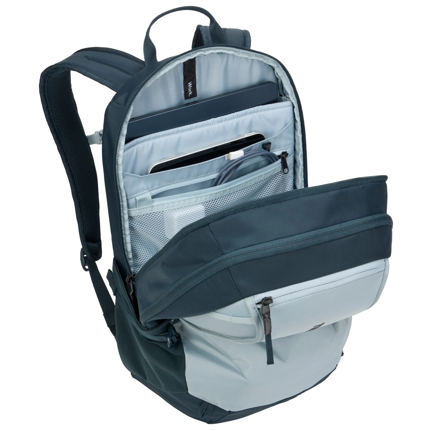 Uniwersalny plecak EnRoute 23L marki Thule inspirowany jest aktywnościami outdoorowymi. Posiada więcej elementów do przechowywania, dzięki którym zachowasz porządek w swoich rzeczach nawet w podróży. Panel organizacyjny umożliwia szybki dostęp do drobnych przedmiotów, artykułów piśmiennych lub kluczy. Druga komora może służyć do przechowywania ubrań na zmianę, akcesoriów lub innych przedmiotów osobistych. Posiada kieszeń z TPU zapinaną na zamek, która jest wodoodporna, chroniąc zawartość, a dzięki swojej nieprzezroczystości również Twoją prywatność.