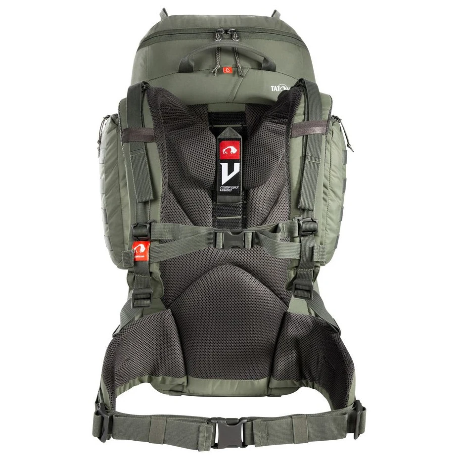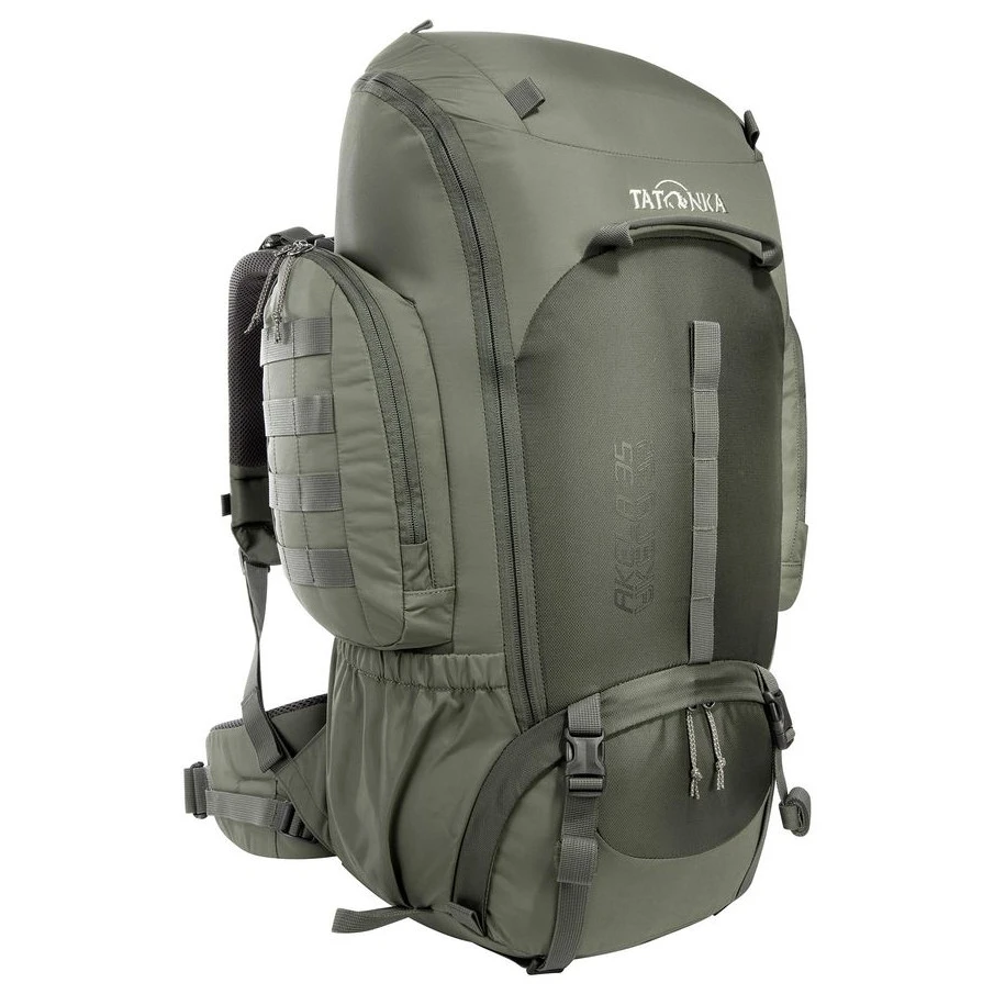 Komora główna jest w pełni rozpinana, co znacznie ułatwia pakowanie i dostęp do wyposażenia. Oddzielna dolna przegroda nadaje się na śpiwór lub oddzielenie brudnych ubrań. Plecak oferuje również dwie przestronne boczne kieszenie na zamek błyskawiczny, a za nimi otwarty kanał do przechowywania kijków od namiotu. Praktyczne pętle na pokrywie, z przodu i po bokach umożliwiają przymocowanie dodatkowego wyposażenia, a paski kompresyjne pomagają ustabilizować ładunek.