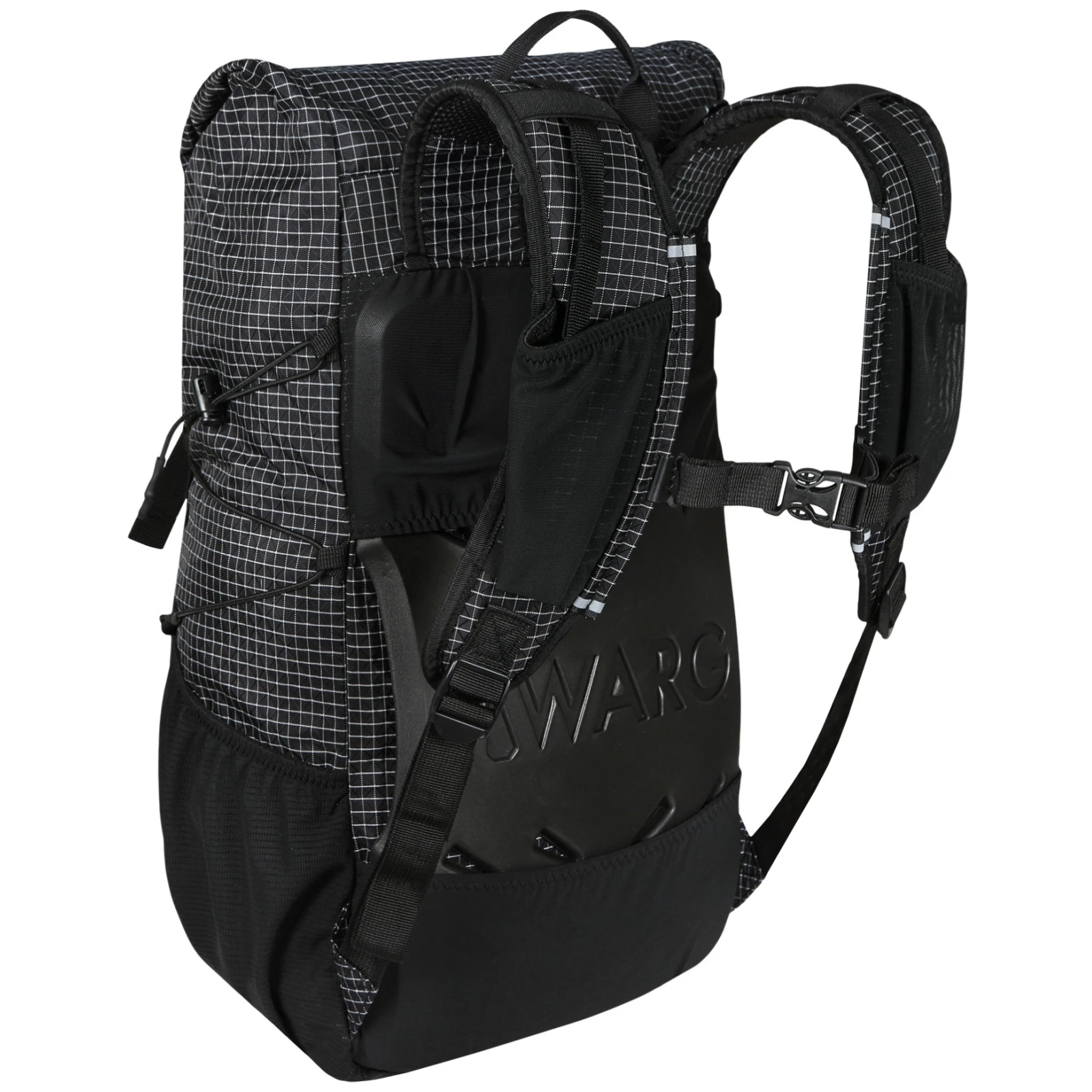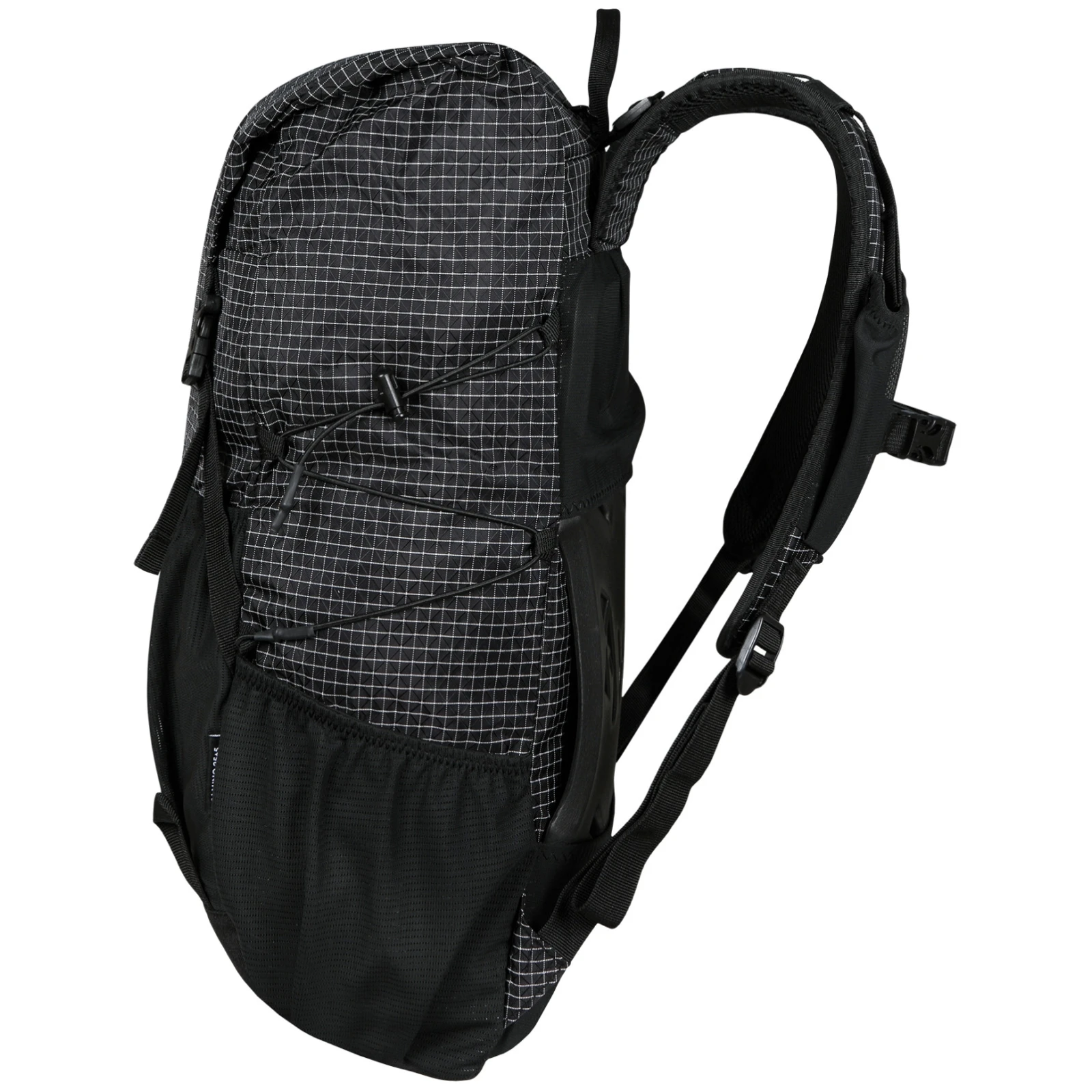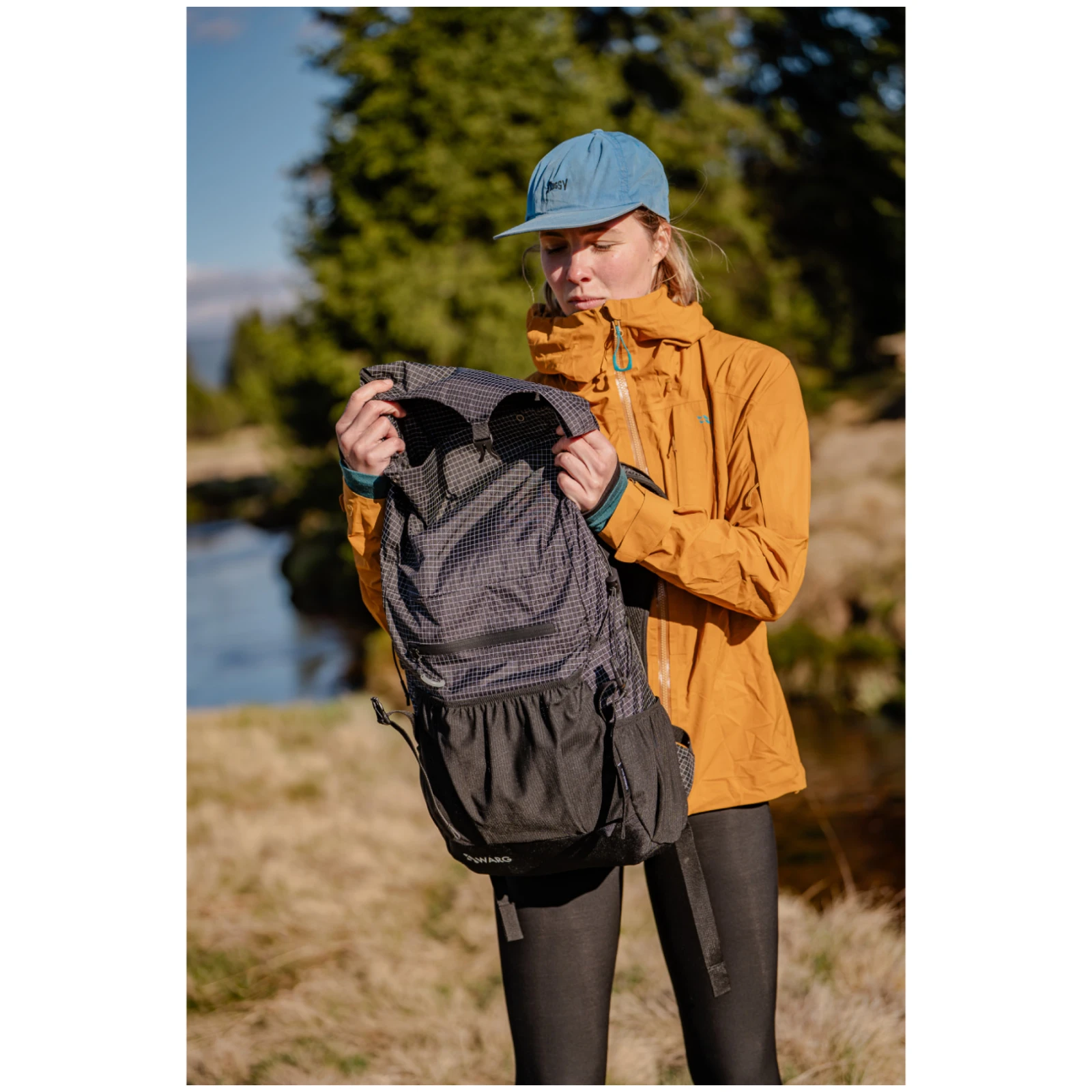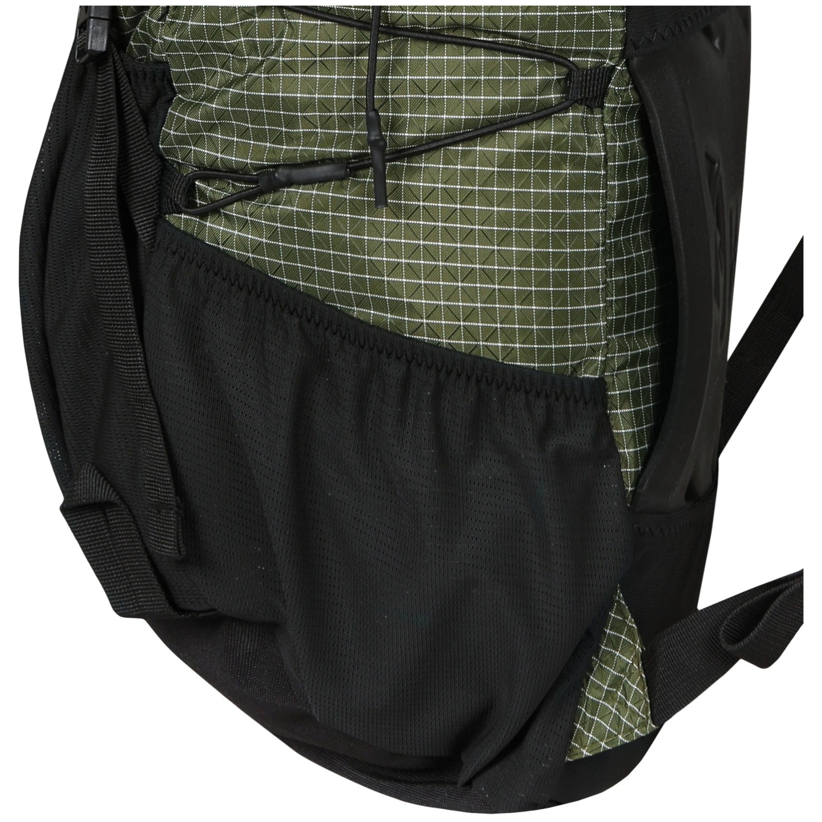 Sztywne plecy z panelem tylnym z pianki EVA zapewniają komfort noszenia, a w razie potrzeby panel można wyjąć i użyć jako praktyczne siedzisko. Po bokach znajdują się kieszenie z elastycznego materiału, odpowiednie na butelki lub sprzęt, oraz ściągacze, które służą do kompresji plecaka lub mocowania dodatkowego wyposażenia. Paski naramienne są wyposażone w małe kieszonki na drobiazgi, które mają idealny rozmiar na batony energetyczne, składane butelki lub drobiazgi, które chcesz mieć pod ręką.