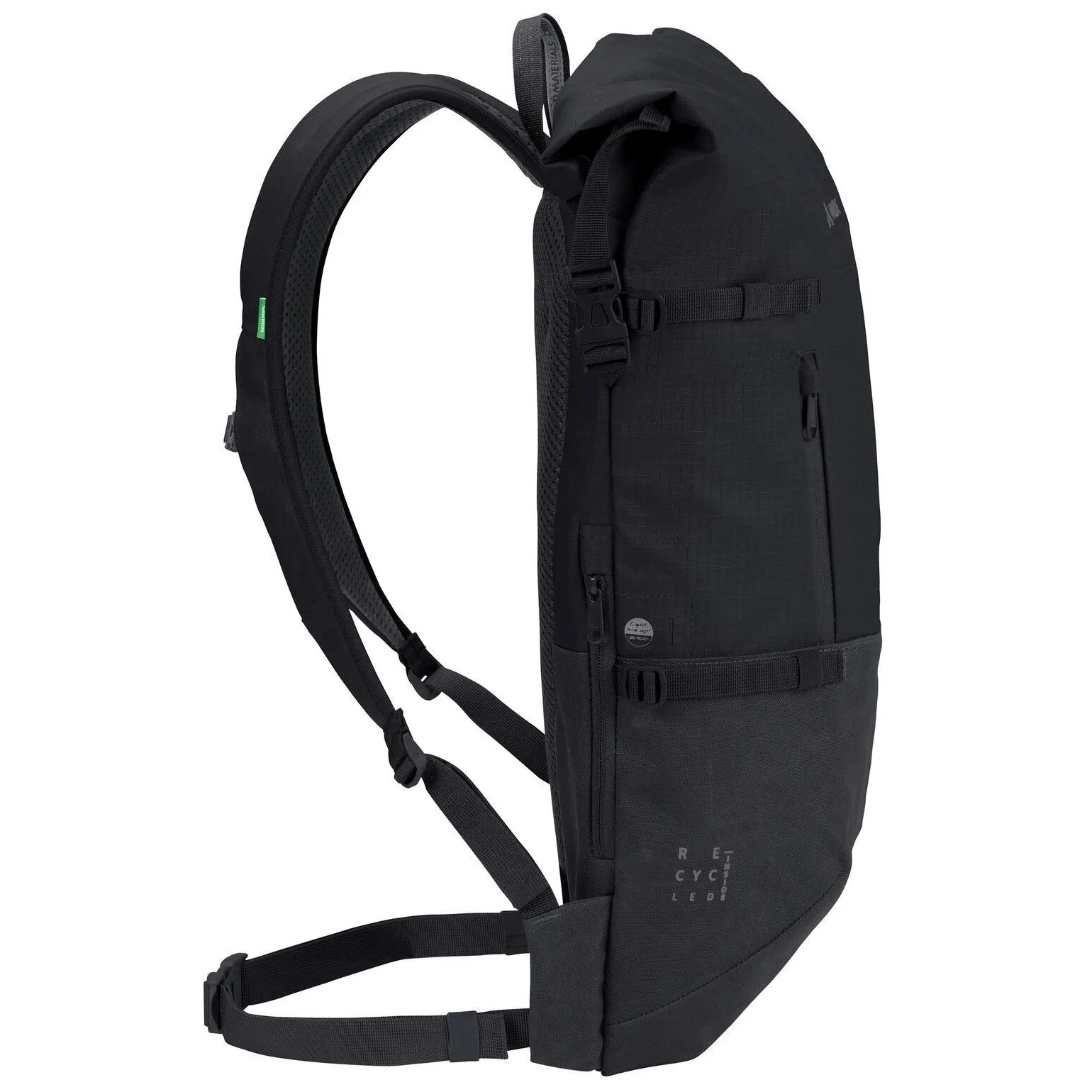 Ergonomiczne szelki ErgoShape, wyściełane plecy i pas biodrowy zapewniają komfort nawet przy pełnym obciążeniu. Materiał Eco Finish odpycha wodę i brud bez PFC i jest wykonany z recyklingu PET i poliamidu, co zmniejsza ślad ekologiczny i wspiera zrównoważony rozwój.