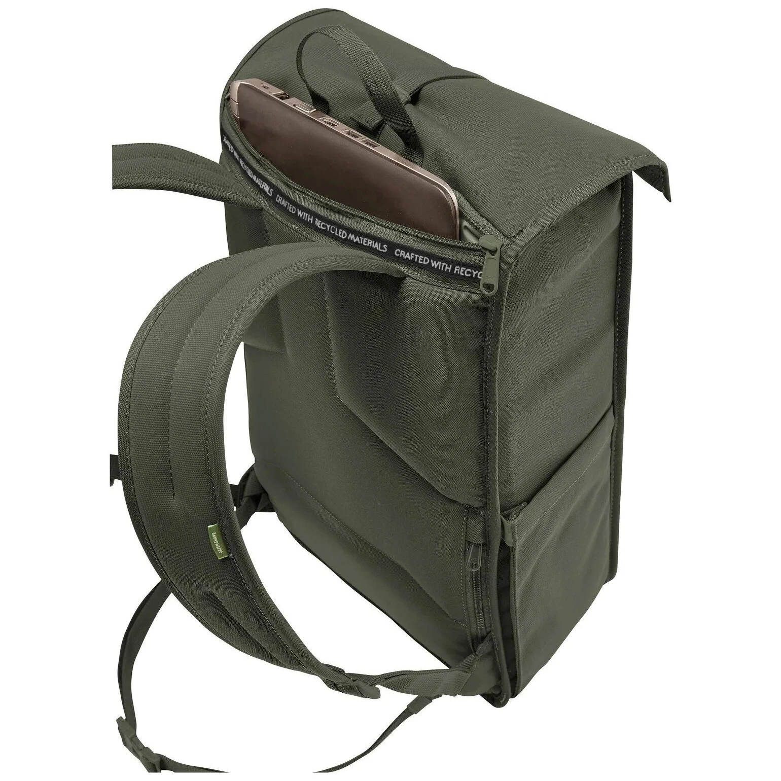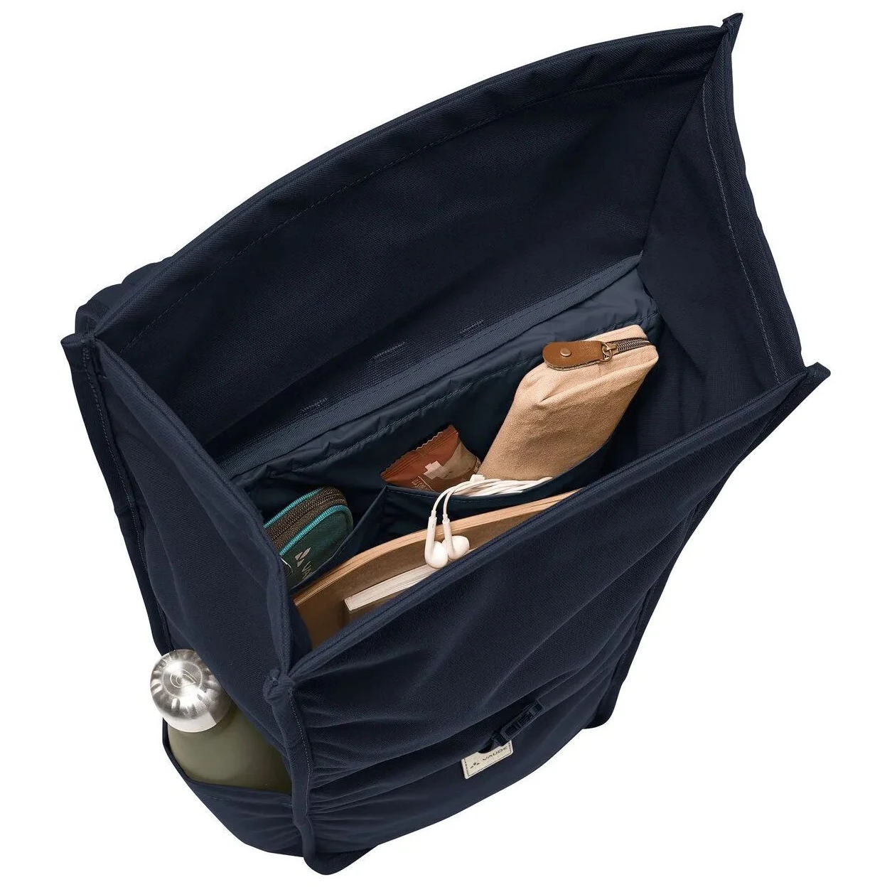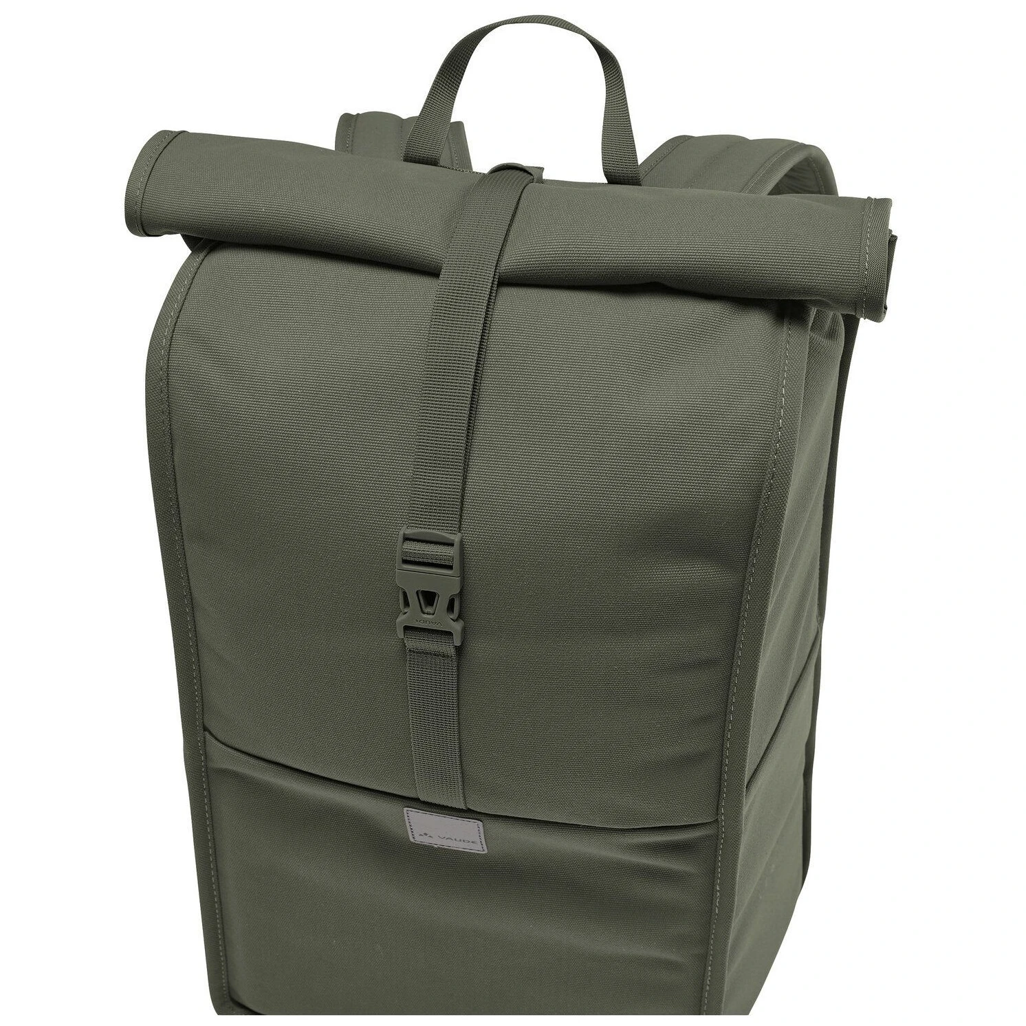 Plecak Coreway Rolltop 20 Vaude to nowoczesny towarzysz do miasta i na rower. Dzięki pojemności 20 litrów i praktycznemu rolowanemu zamknięciu pomieści wszystko, czego potrzebujesz w ciągu dnia. Komora główna oferuje wystarczająco dużo miejsca, uzupełnionego o wyściełaną kieszeń na laptopa 15,6", boczny uchwyt na butelkę i dużą tylną kieszeń na zamek błyskawiczny do bezpiecznego przechowywania telefonu lub portfela.